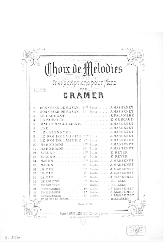 | Work Title | Choix de mélodies sur 'Esclarmonde' |