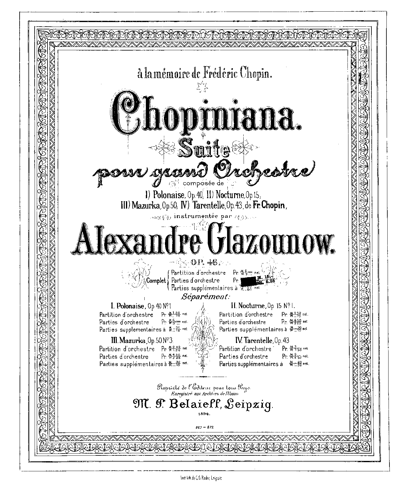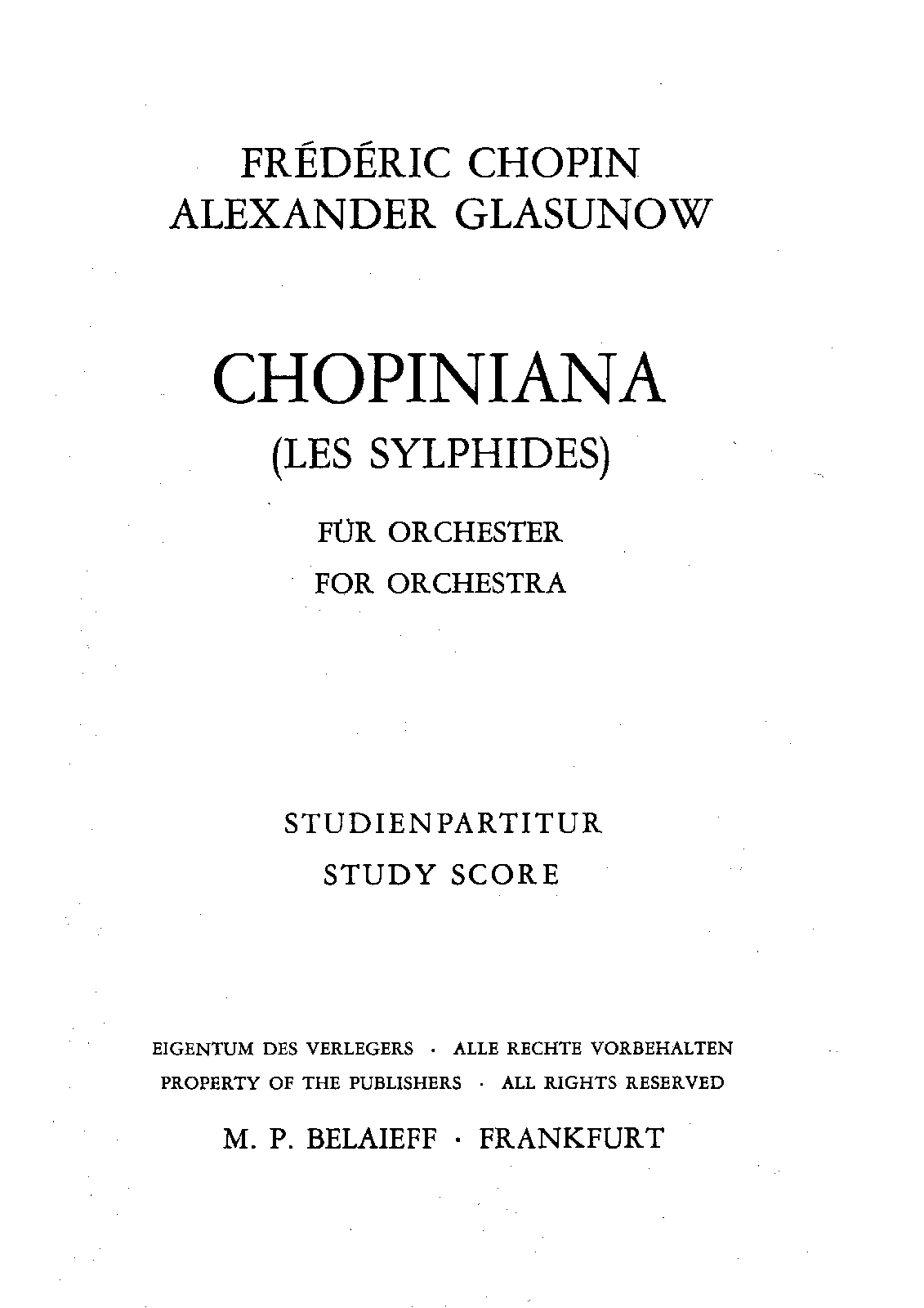 | Related Works | Glazunov's selections and orchestrations would form the basis of Fokine's ballet Les Sylphides. |