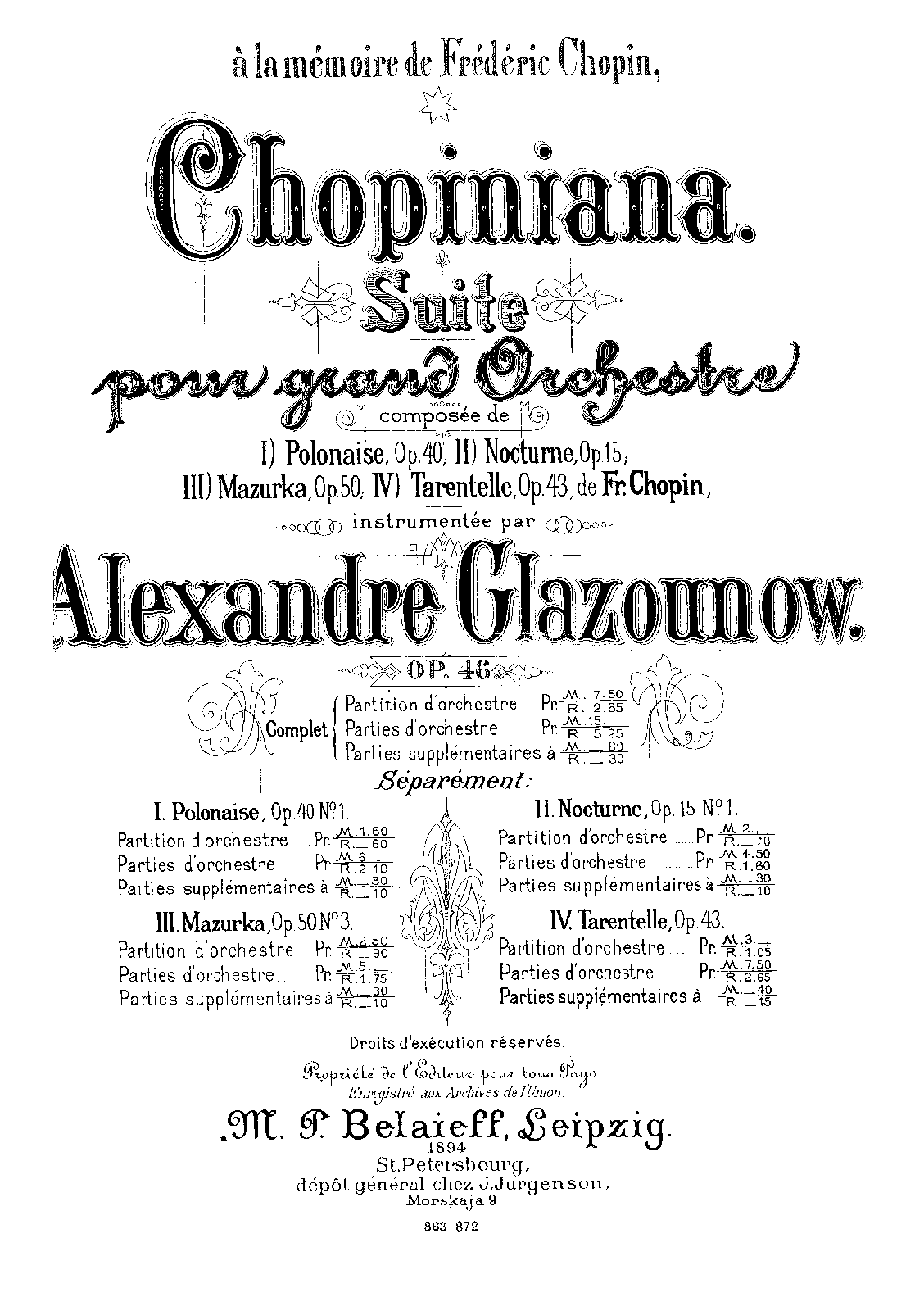 | First Publication. | 1894 – Leipzig: M.P. Belaieff |