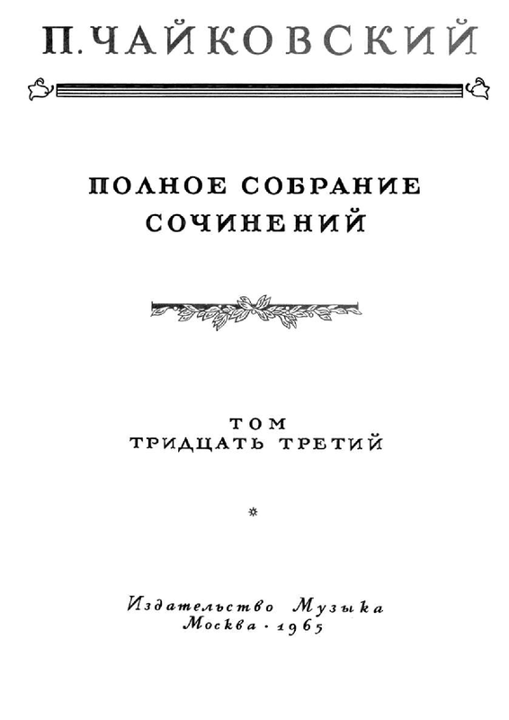 First Publication. 1960 — Moscow: Muzgiz. Full score (in vol.27 of Pyotr Tchaikovsky: Complete Collected Works, p.341–357). Plate M. 18604 Г.