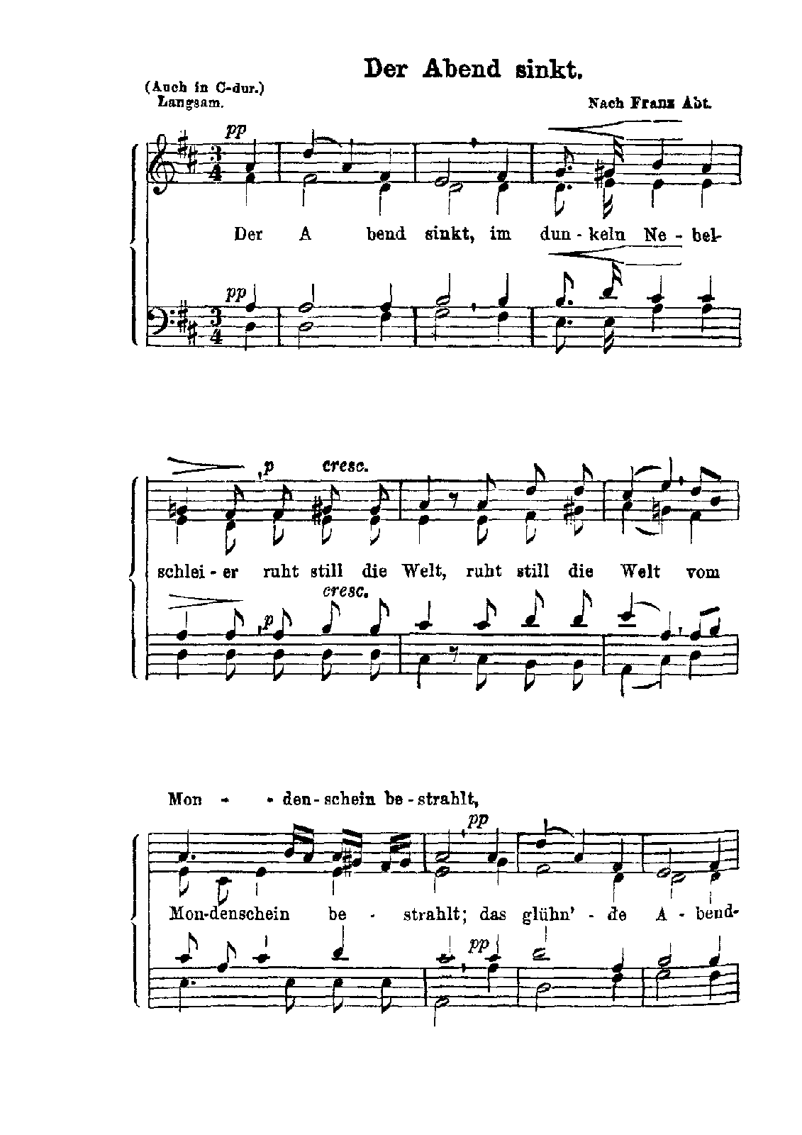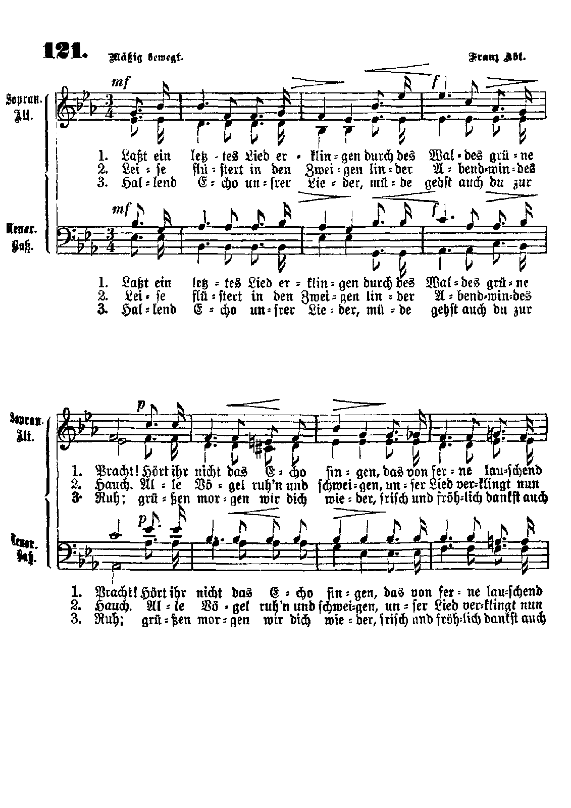 This page is marked for cleanup because if these pieces are by Franz Abt at all, we need the original Opus numbers, cycle titles, indications about the original versions etc..
