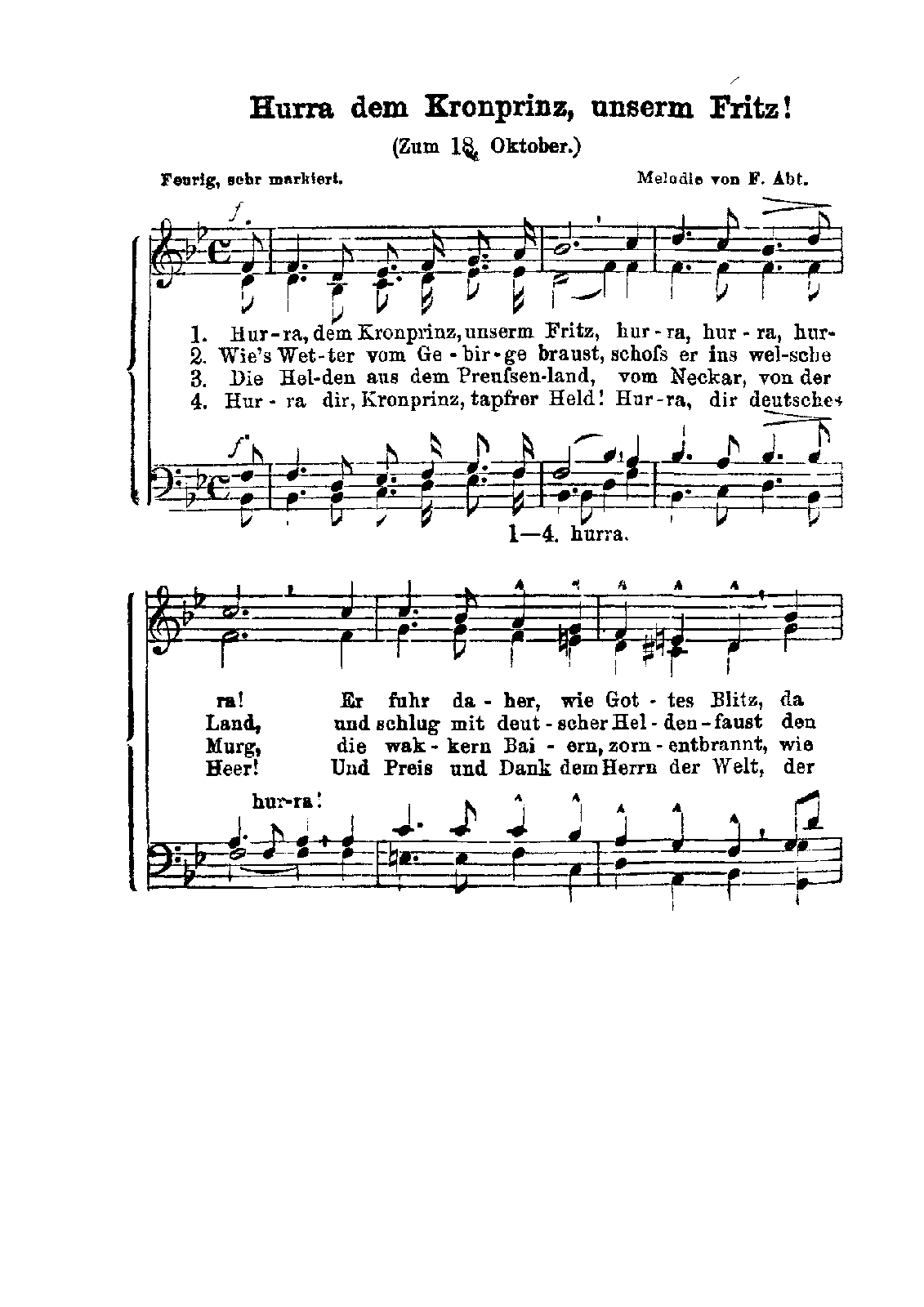 Hurra dem Kronprinz, unserm Fritz! (Zum. 18. Oktober)