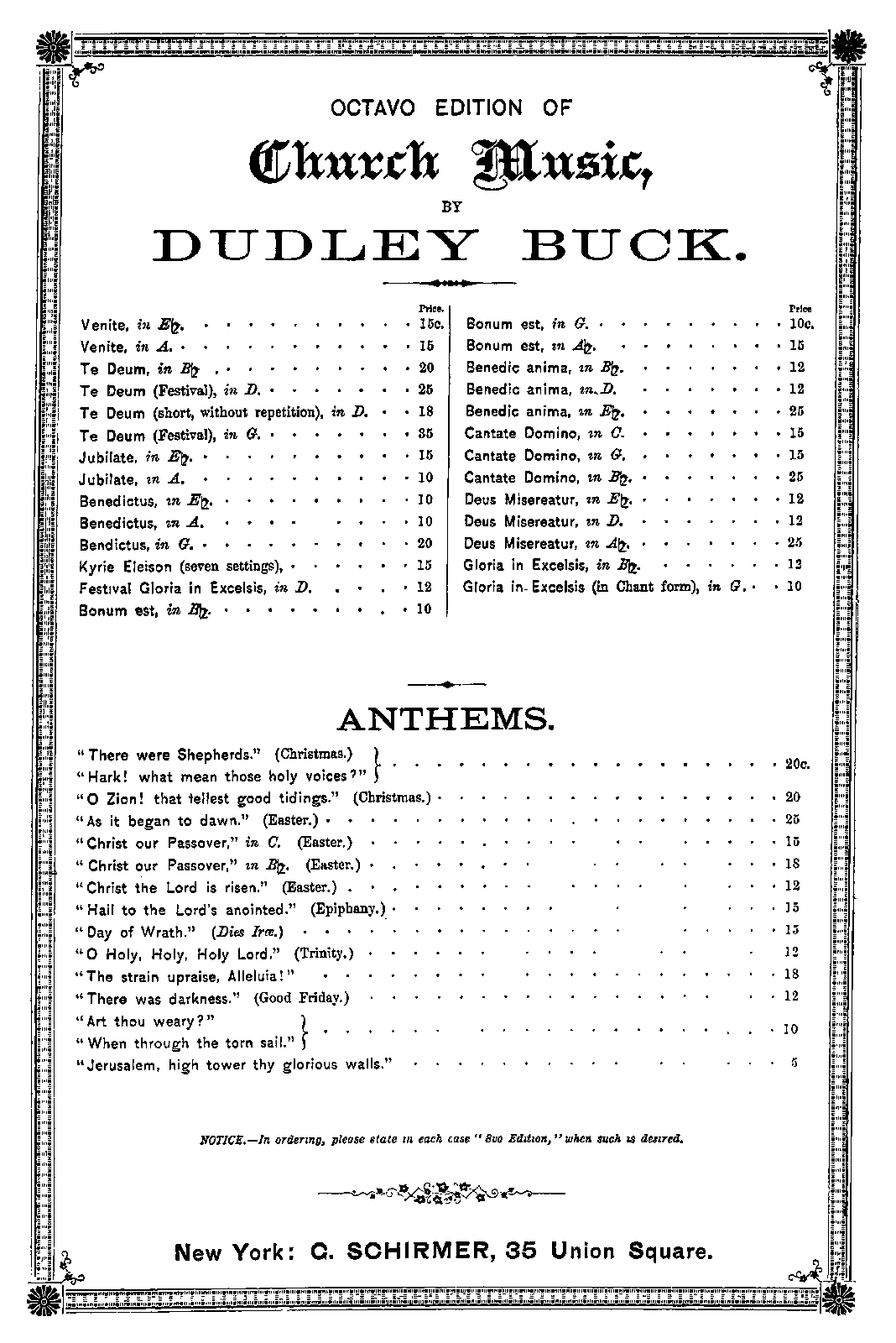 | First Publication. | 1884 (?) – New York: Schirmer |