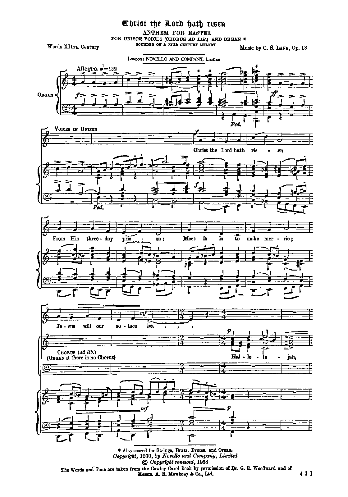 | Genre Categories | Anthems; Religious works; For unison chorus, mixed chorus, organ; |