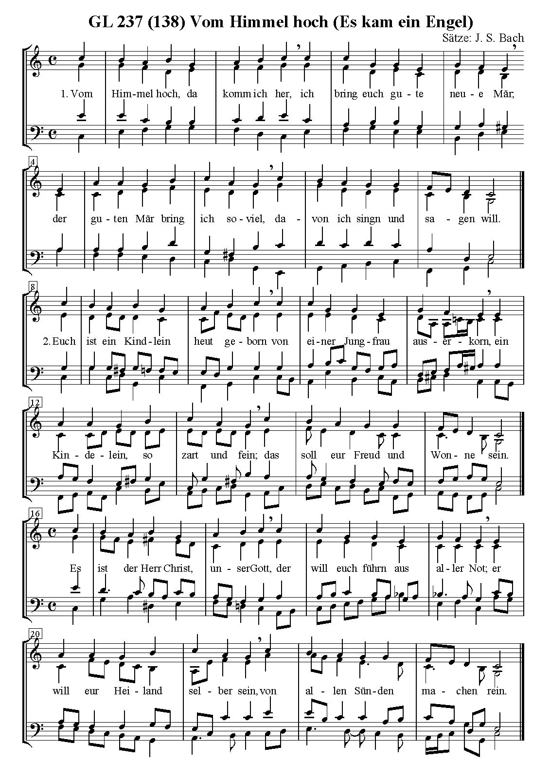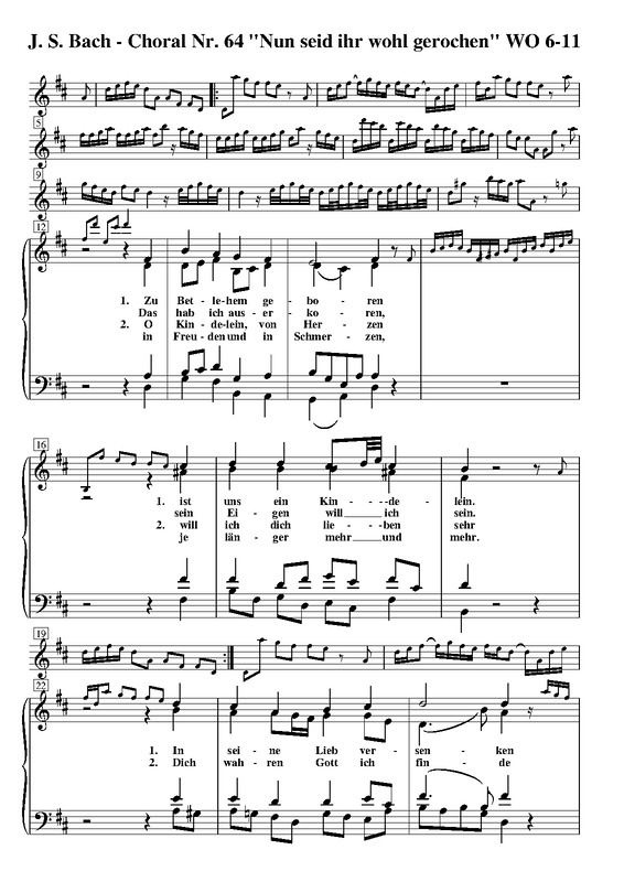 ⇒ 5 more: 42. Jesus richte mein Beginnen • 43. Ehre sei dir Gott gesungen • 54. Herr, wenn die stolzen Feinde schnauben • 64. Nun seid Ihr wohl gerochen • Engraving files (Capella)
