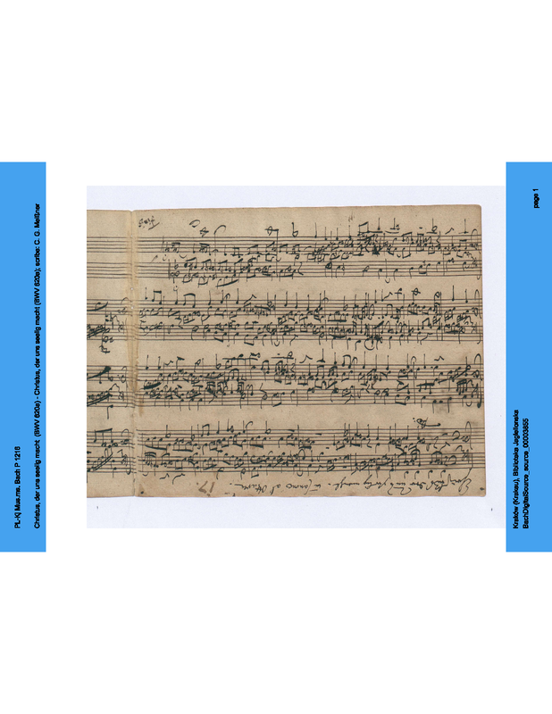 Misc. Notes Biblioteka Jagiellońska, Kraków (PL-Kj): Mus. ms. Bach P 1216 (8)