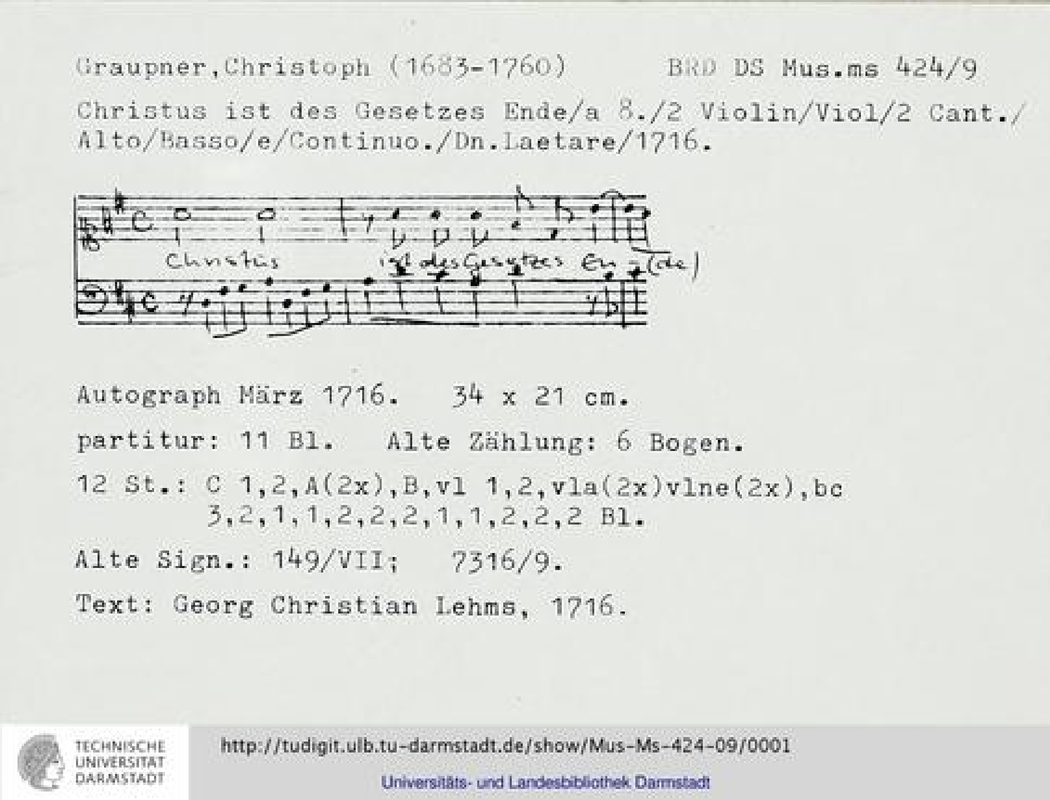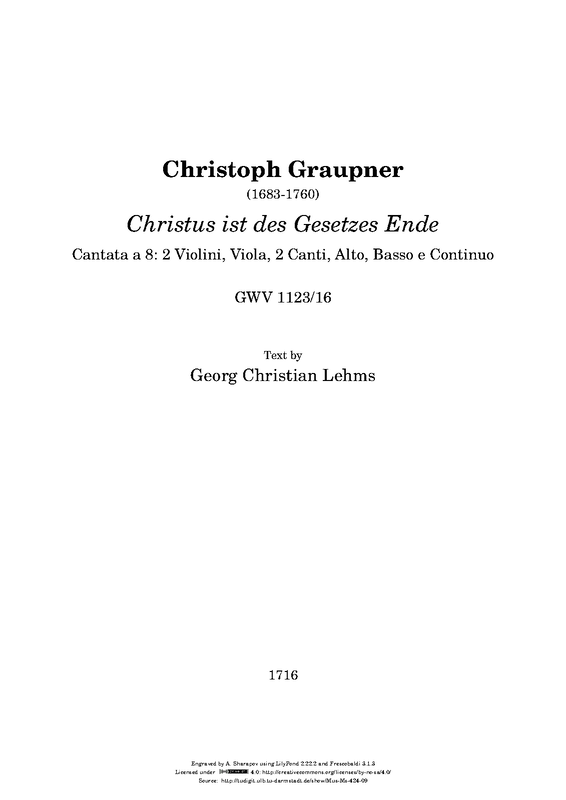 | Work Title | Christus ist des Gesetzes Ende, GWV 1123/16 |