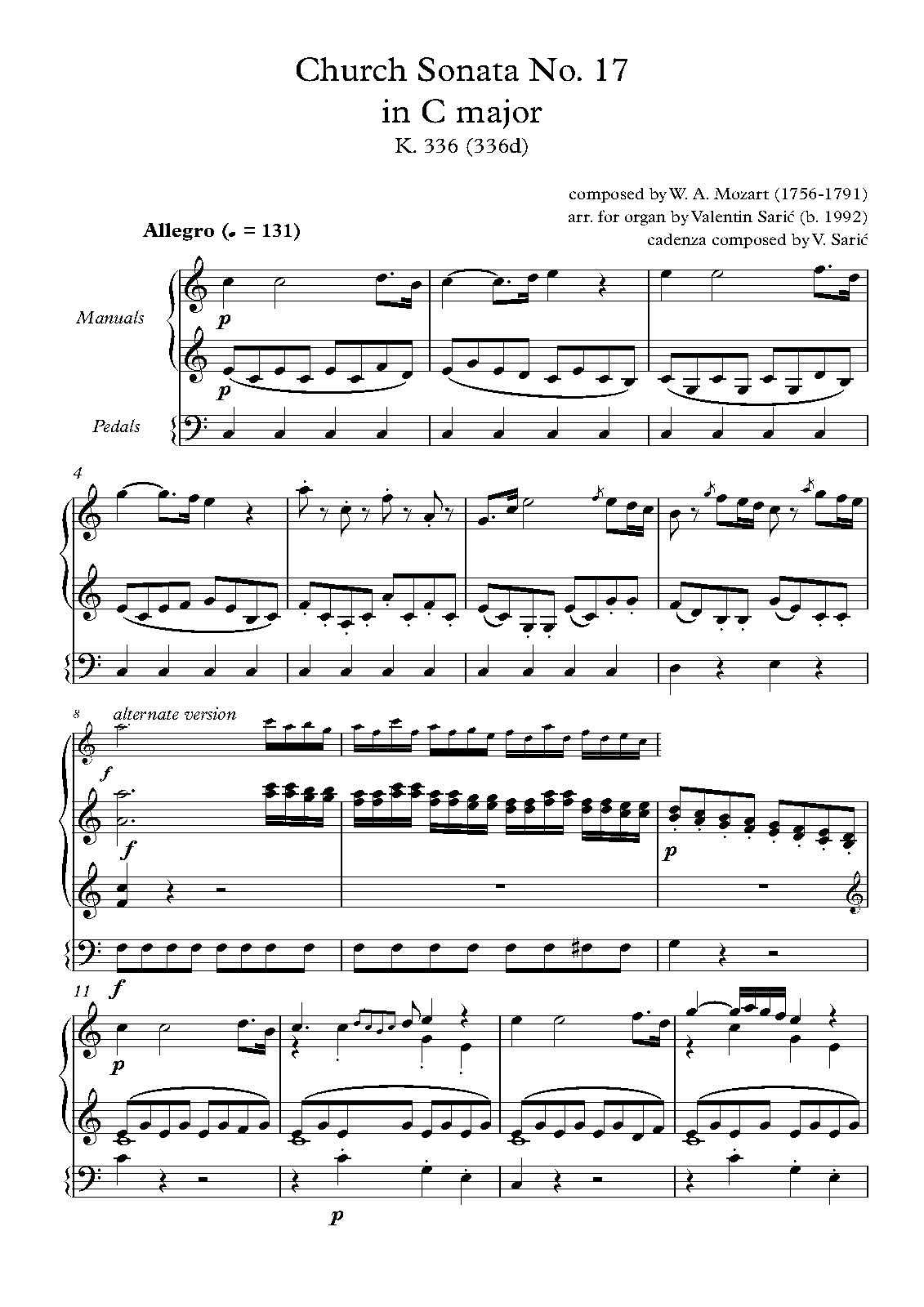 | External Links | NMA score NMA report (German) Church Sonata in C major, K.336/336d - Scores at Sheet Music Plus |