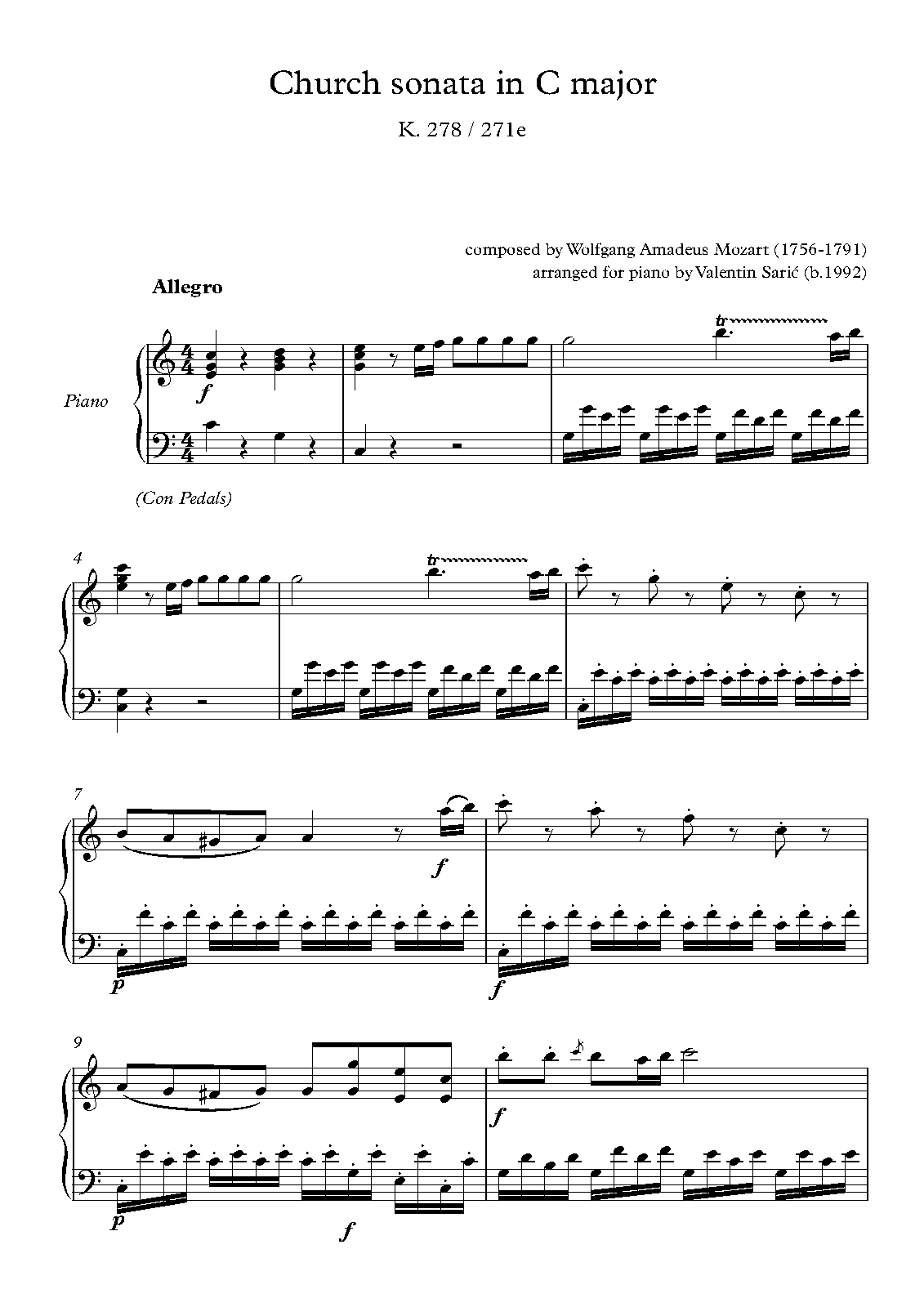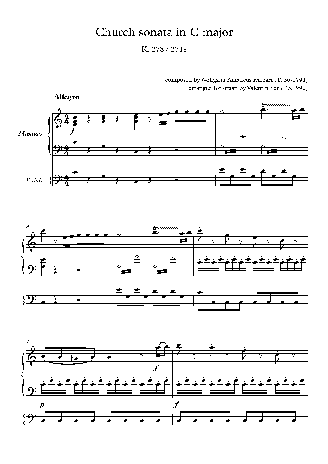 Church Sonata in C major, K.278/271e (Mozart, Wolfgang Amadeus)