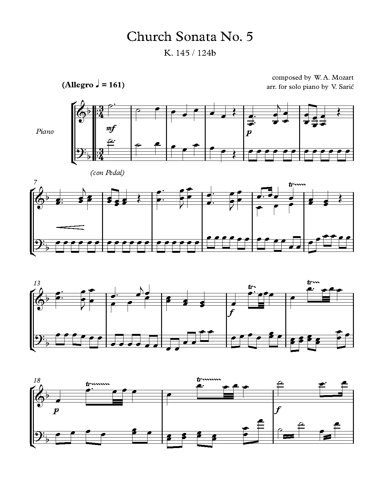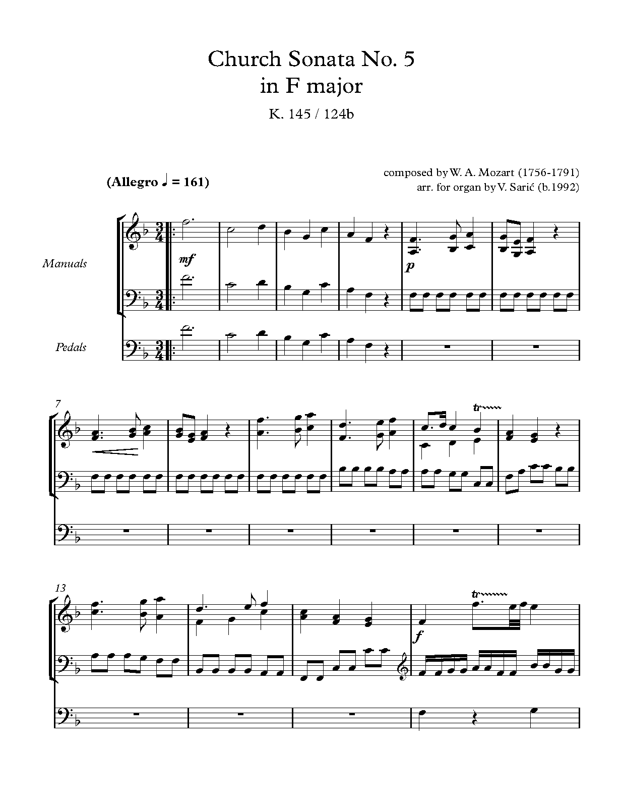 | External Links | NMA score NMA report (German) All Music Guide Hyperion Records Church Sonata in F major, K.145/124b - Scores at Sheet Music Plus |