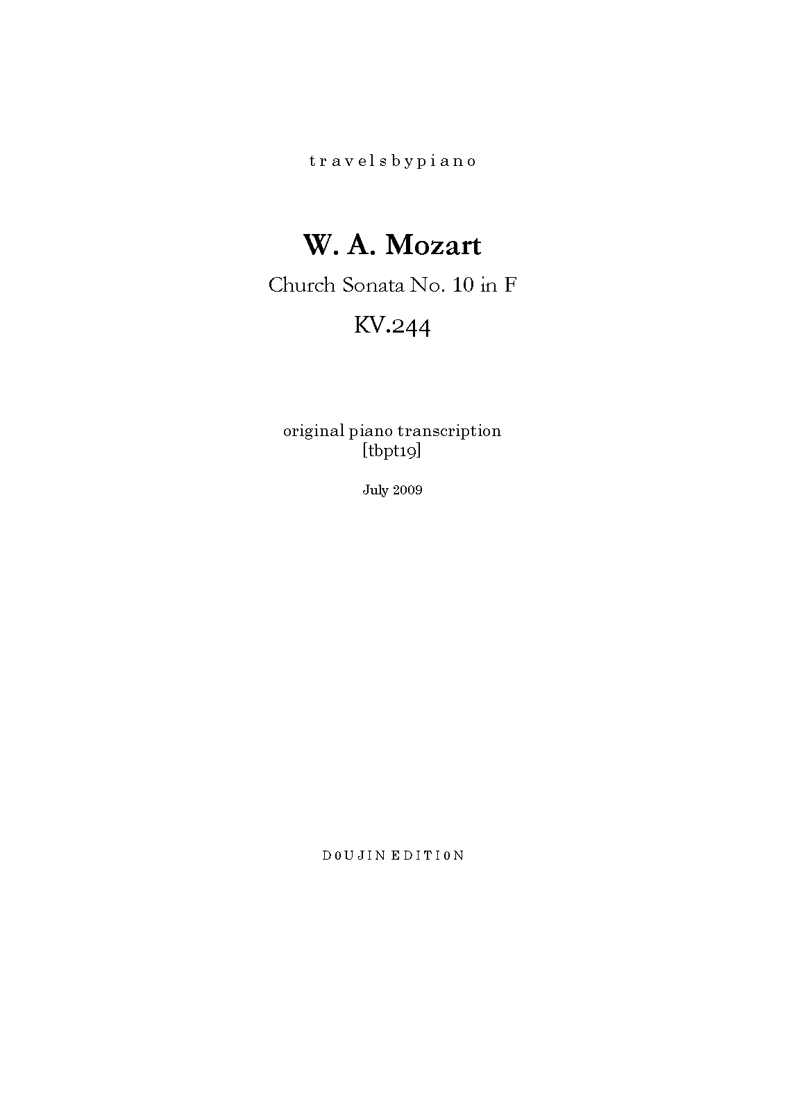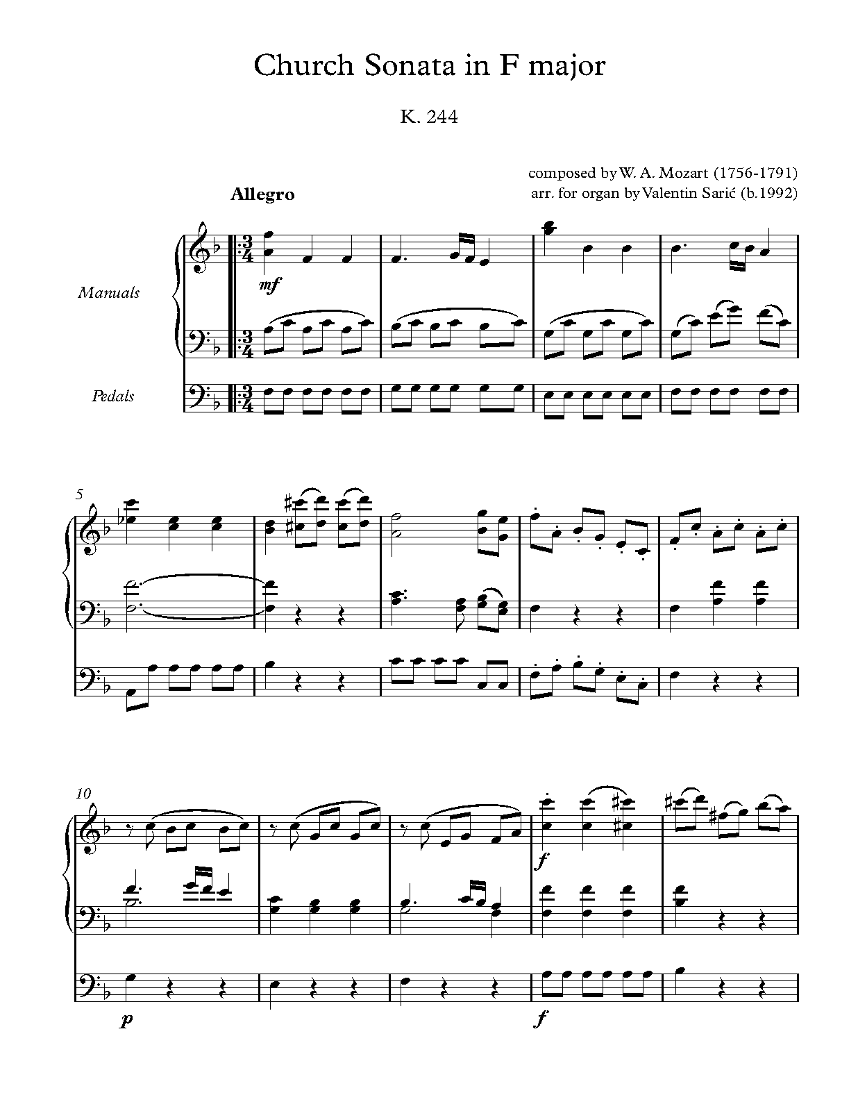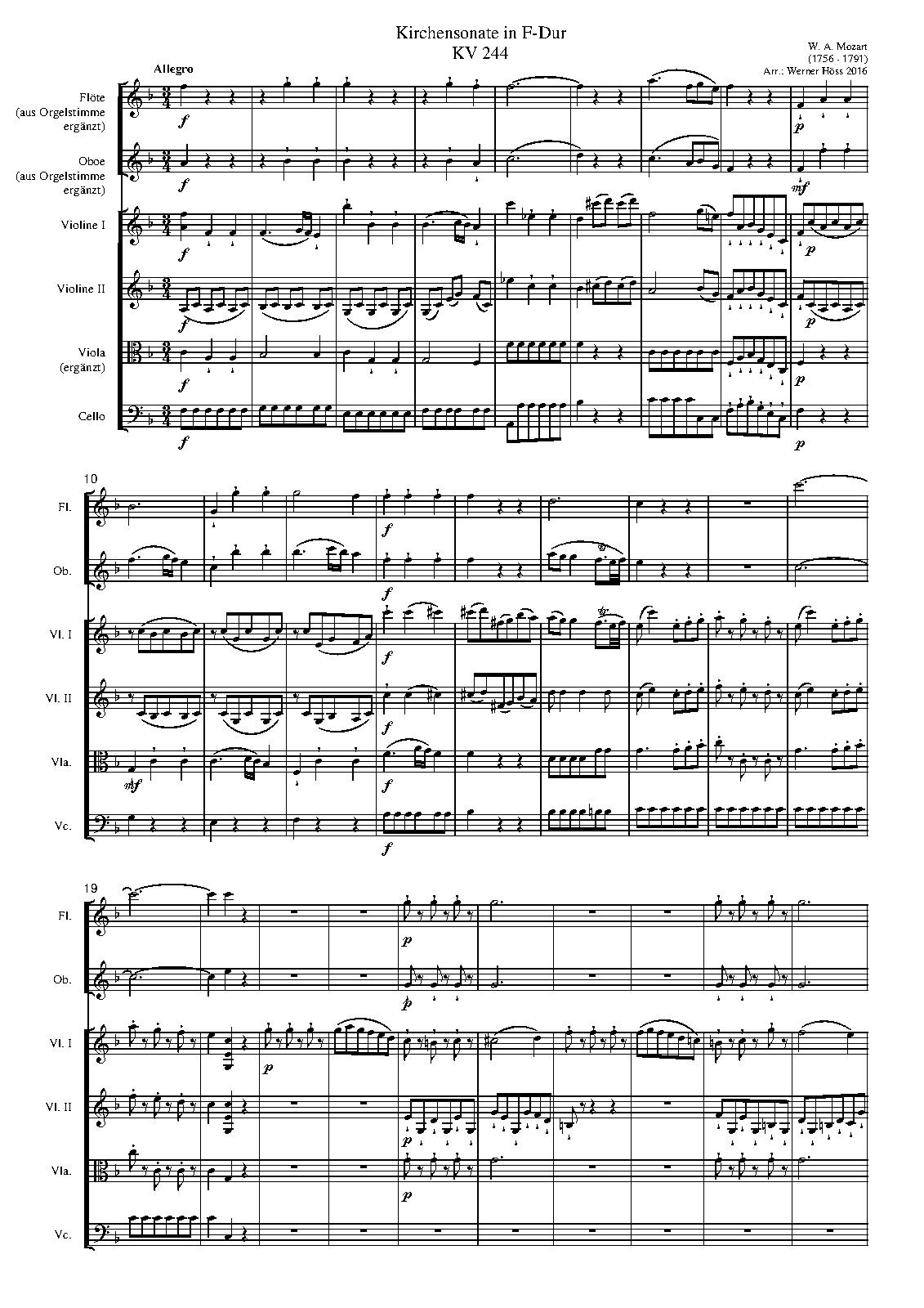 | External Links | Church Sonata in F major, K.244 - Scores at Sheet Music Plus NMA score NMA report (German) Wikipedia |