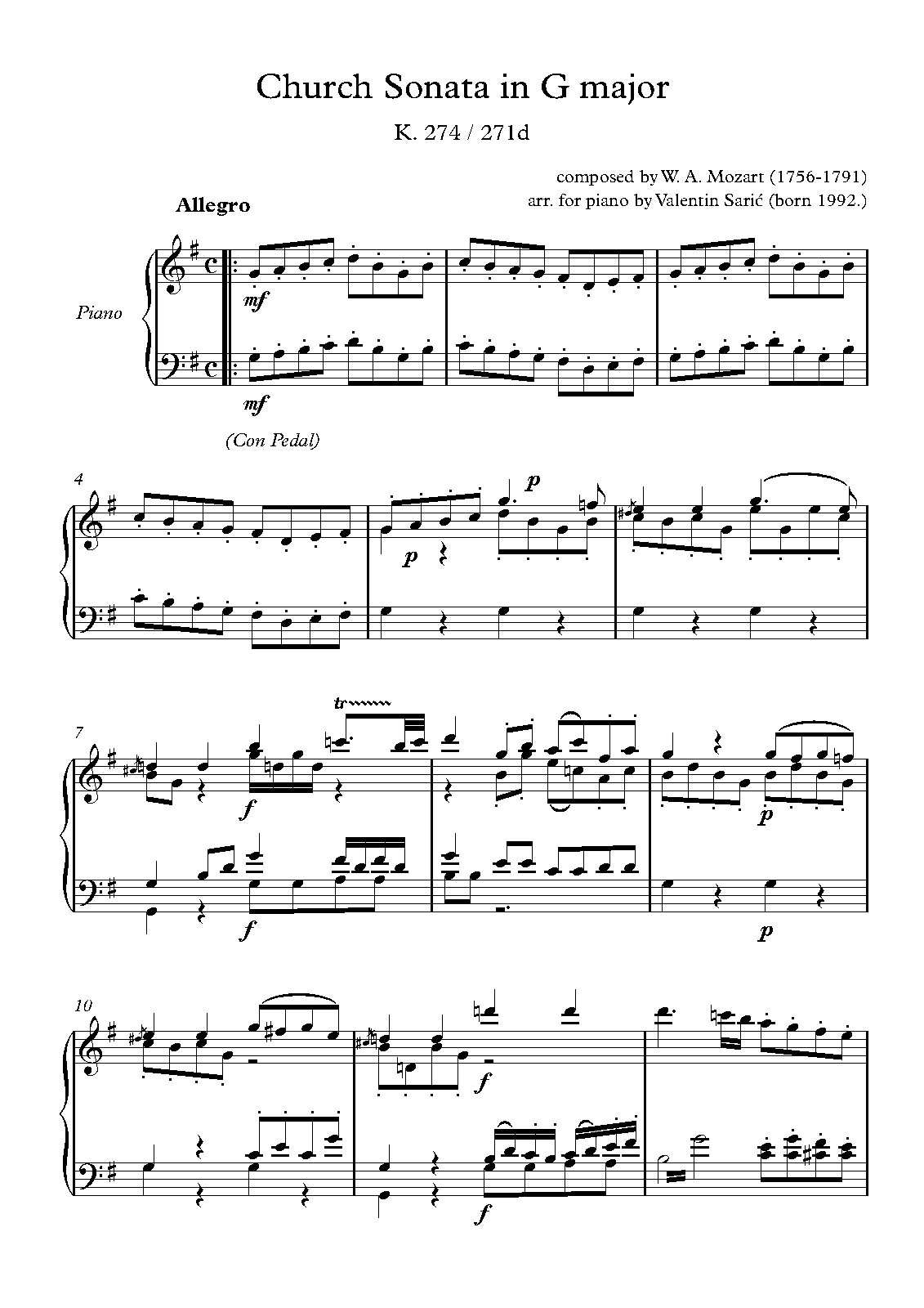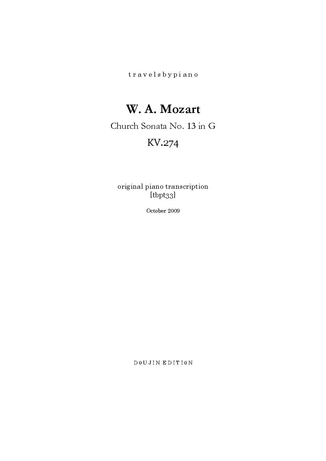 Church Sonata in G major, K.274/271d -  Scores at Sheet Music Plus