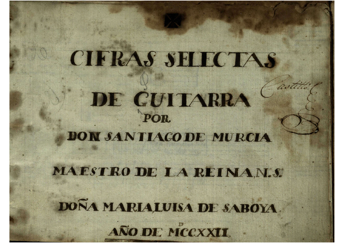 In the manuscript that has survived the centenaries, several folios are missing (f.33,42,44,71-end). Something like "Obra por la ..." has the meaning of "suite" here. Nearly always a "Passacalle de compassillo" ends with a "proporcion" (Passacalle). In this score "b" is old style for "v" , so a "Pabanas" is a "Pavanas" or a "Gabota" is a "Gavota", "Bacas" is "Vacas". Also "Y" is sometimes an "I", so "Ytalia" is not a fantasy-state, but it means "Italia".