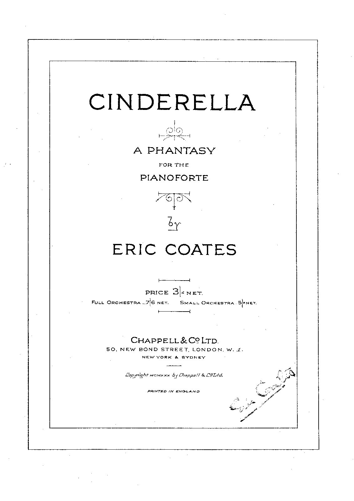 Publisher. Info. London: Chappell, 1930. Plate 30332.