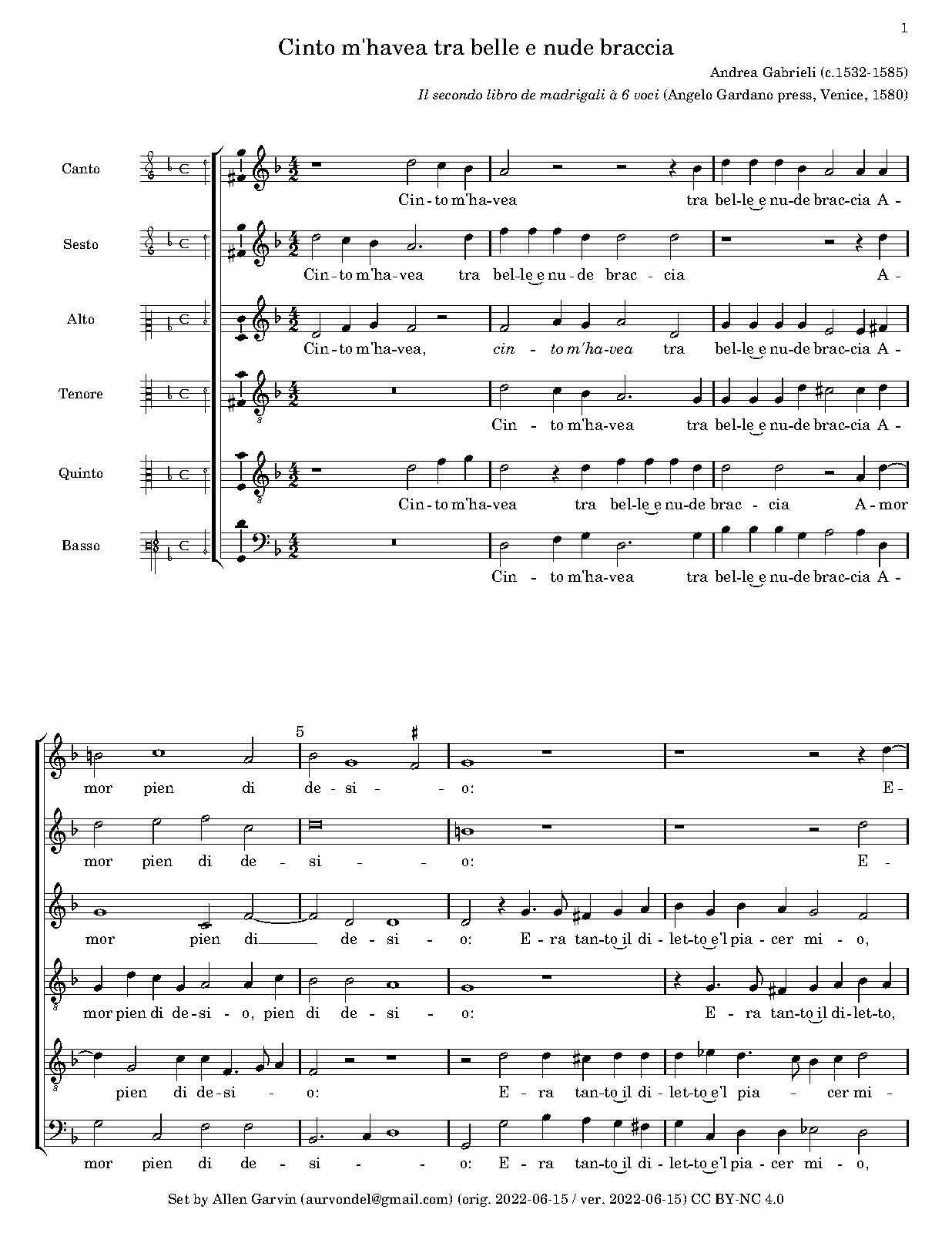 | First Publication | 1580 in Il secondo libro de madrigali a 6 voci (Venice: Angelo Gardano press) |