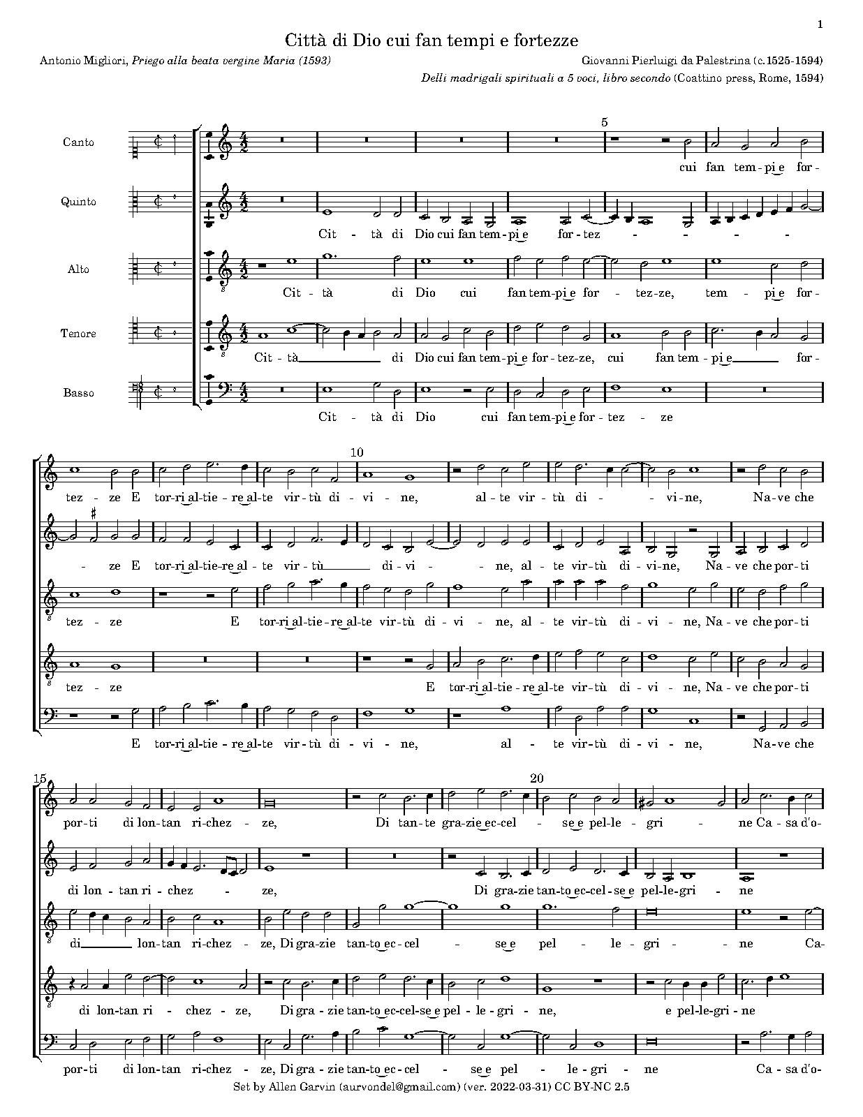 | First Publication | 1594 in Delli madrigali spirituali a 5 voci, libro secondo (Rome: Coattino press) |