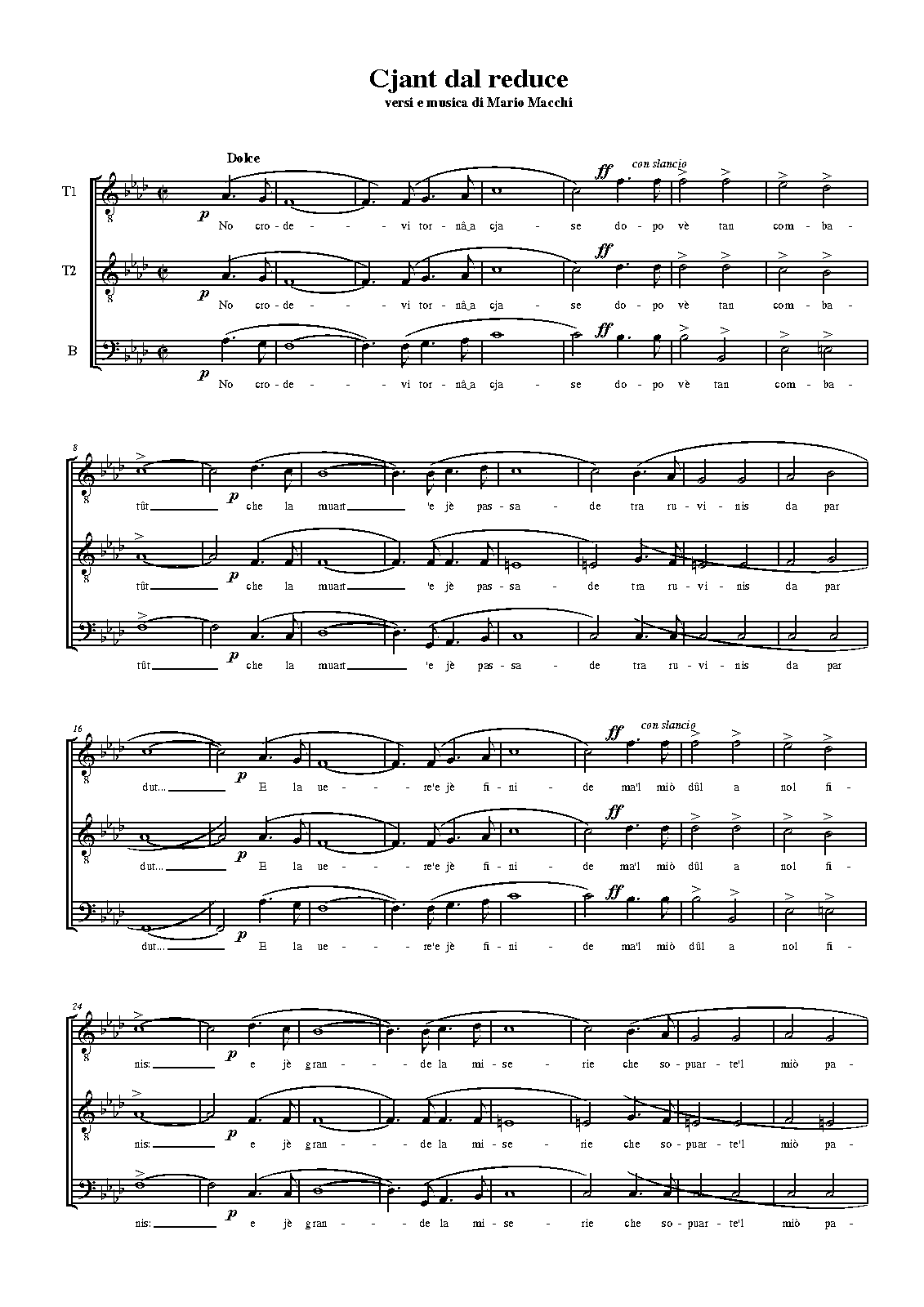 | Extra Information | Il brano ha vinto il Primo premio al concorso indetto dalla Società Filologica Friulana nel 1946 |