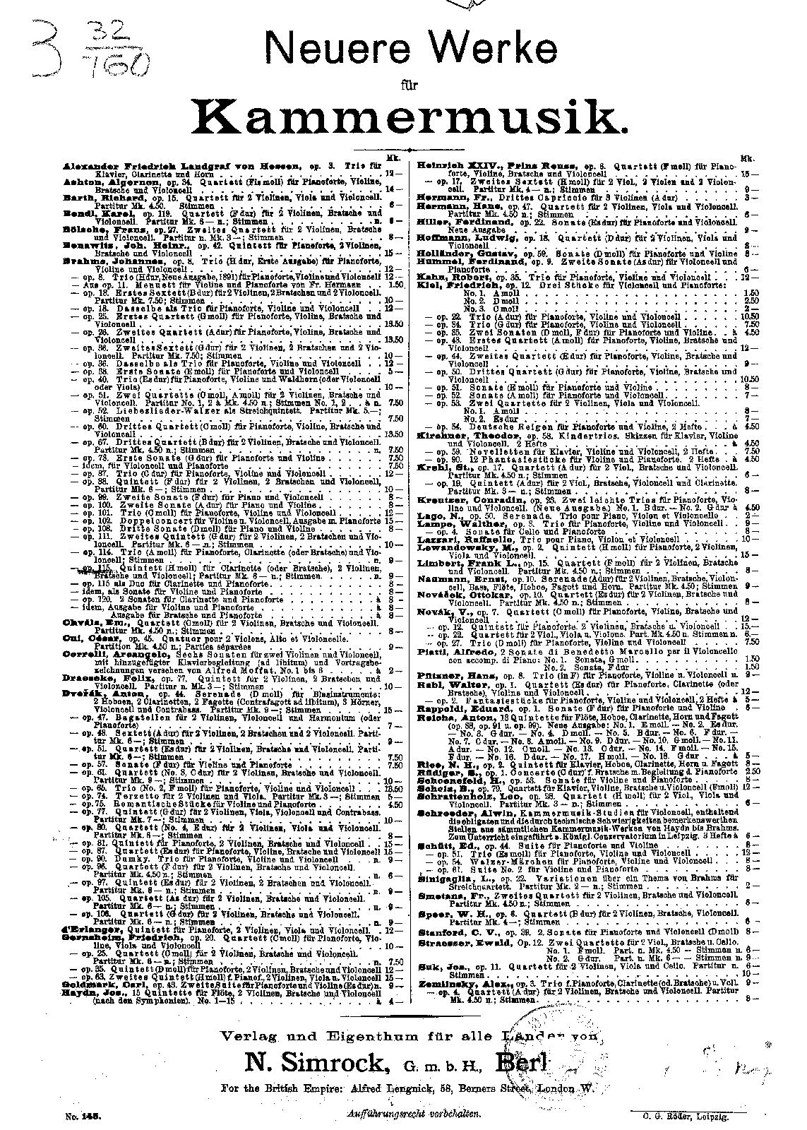 Publisher. Info. Berlin: N. Simrock, 1893. Plate 9982.