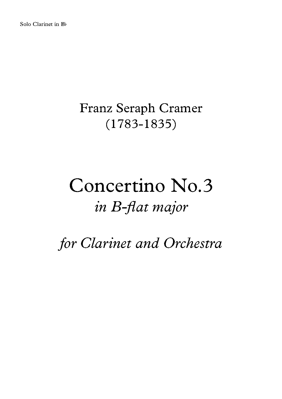 Clarinet Concertino in B-flat major, IFC 3 (Cramer, Franz Seraph)