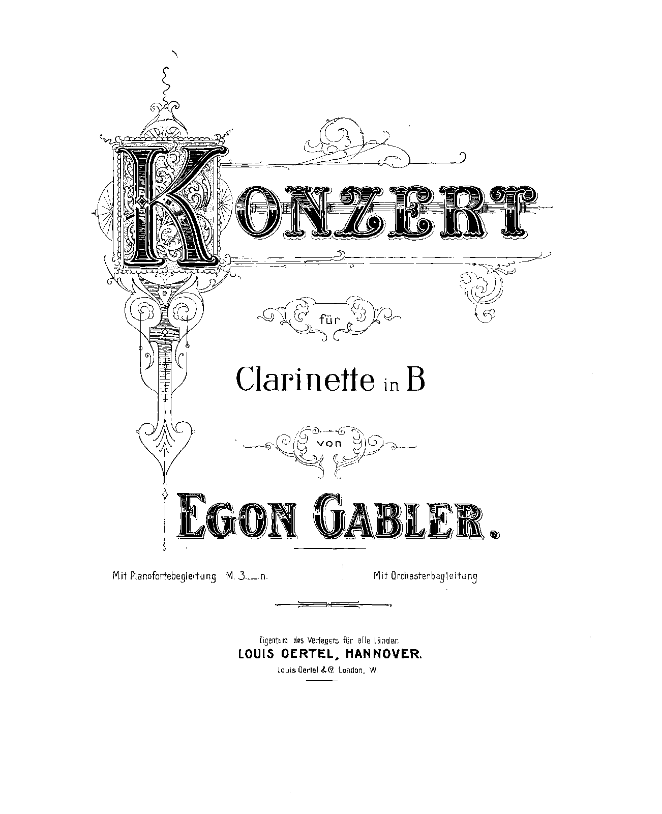 | Work Title | Konzert für Clarinette in B von Egon Gabler, mit Orchesterbegleitung. |