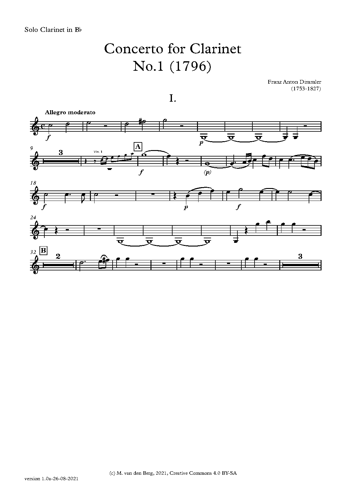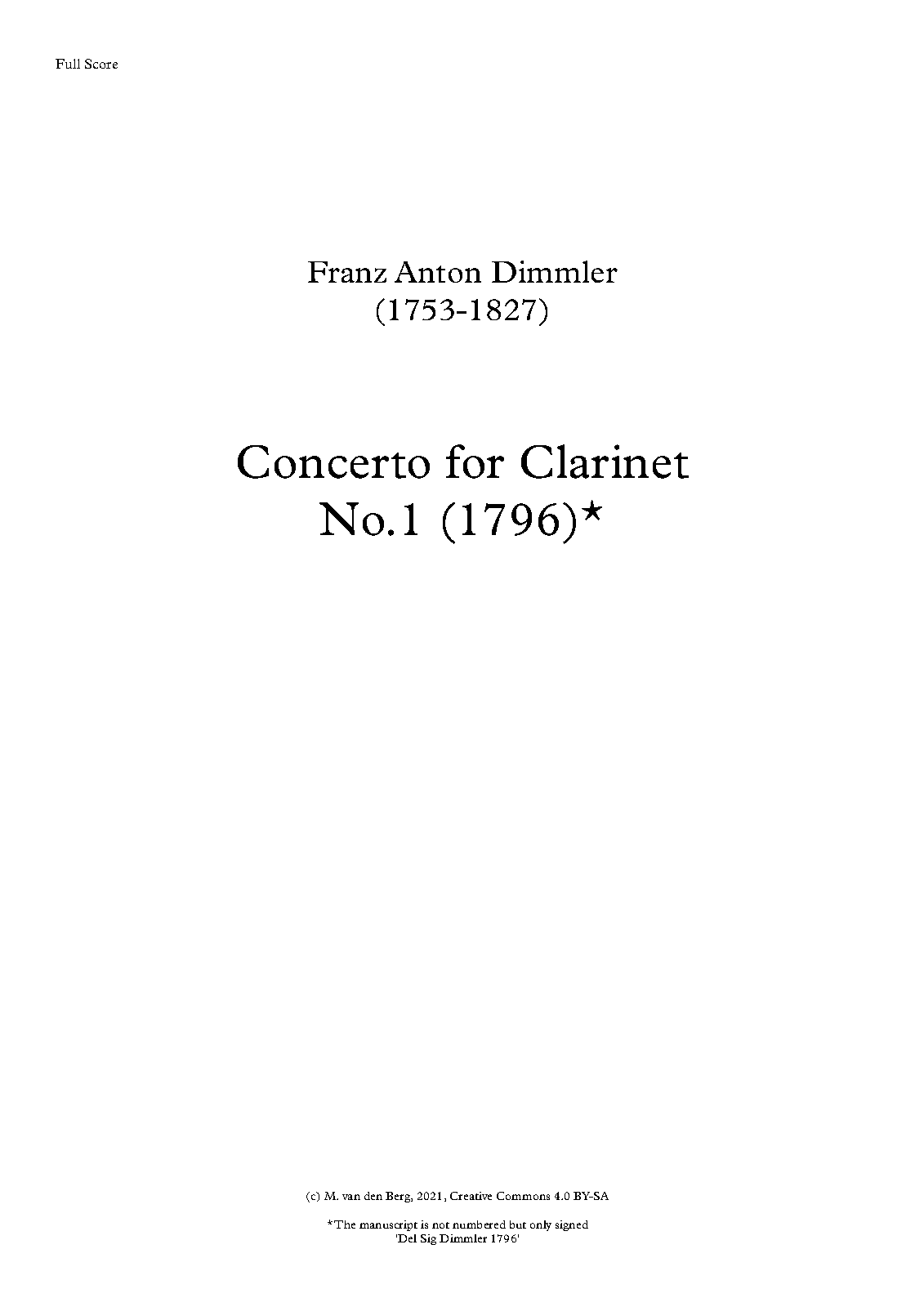 | Work Title | Clarinet Concerto in B-flat major No.1 |