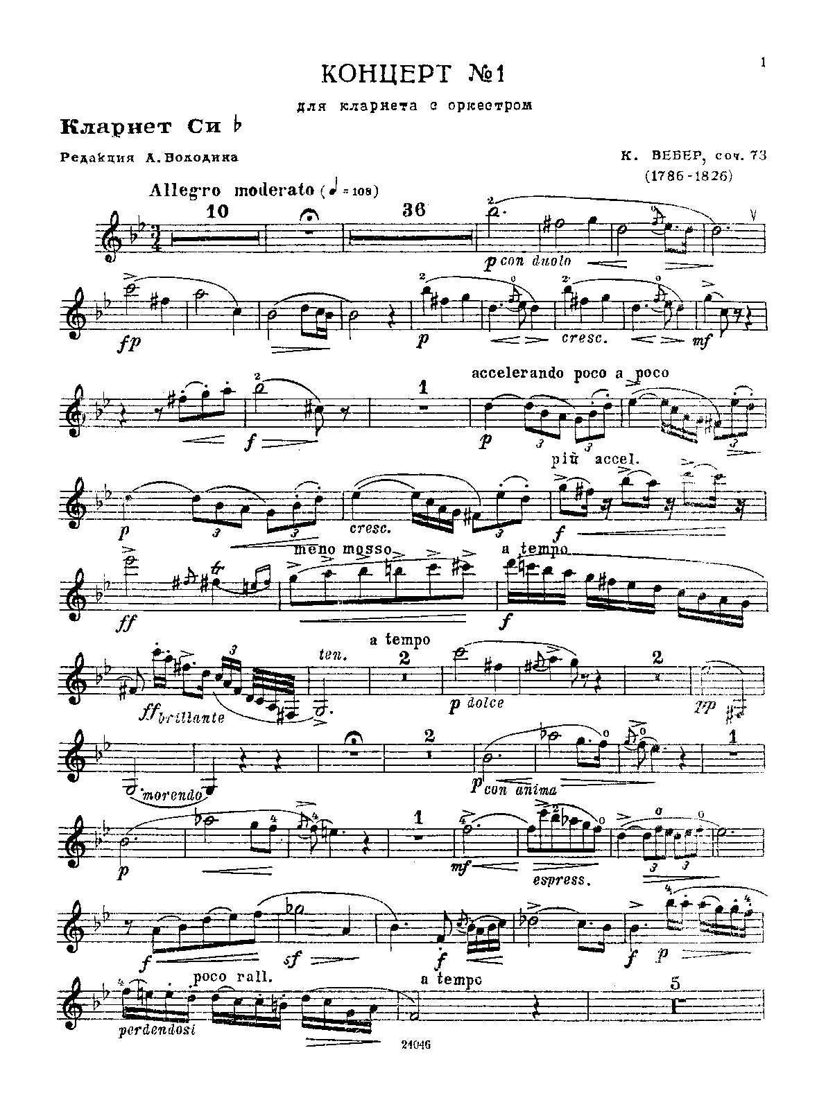 Name Aliases Concierto para clarinete n.º 1 en fa menor, Op. 73 J. 114