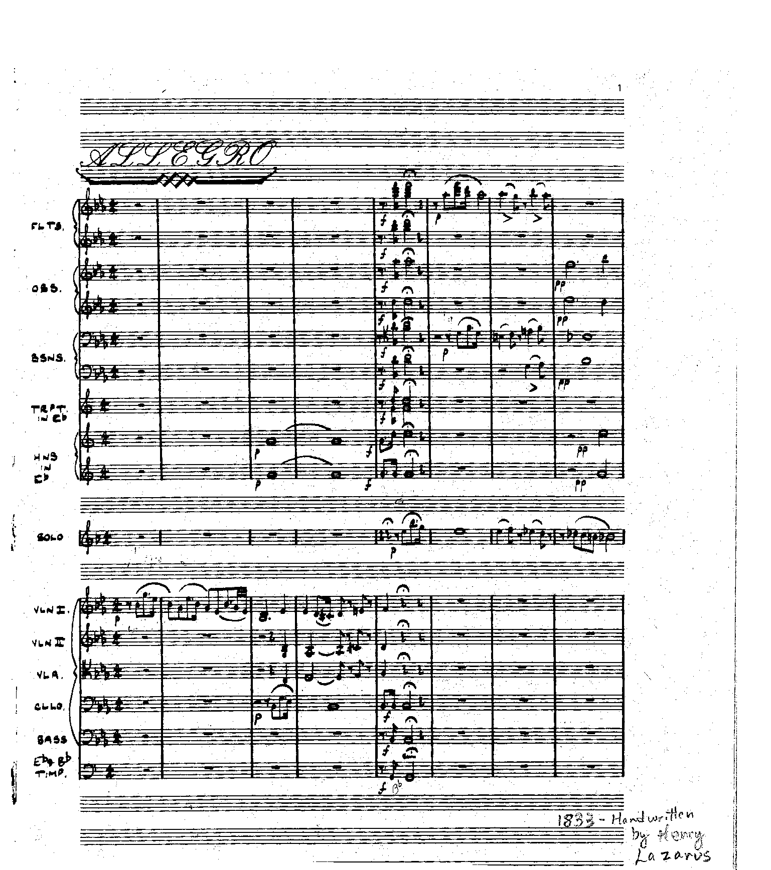 handwritten from parts by Henry Lazarus in 1833