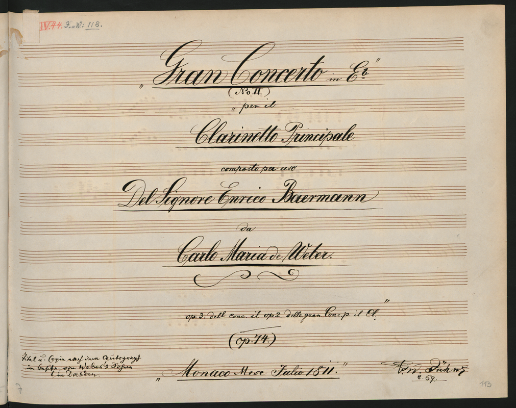Publisher. Info. Compositions pour la clarinette avec piano par C. M. v. Weber