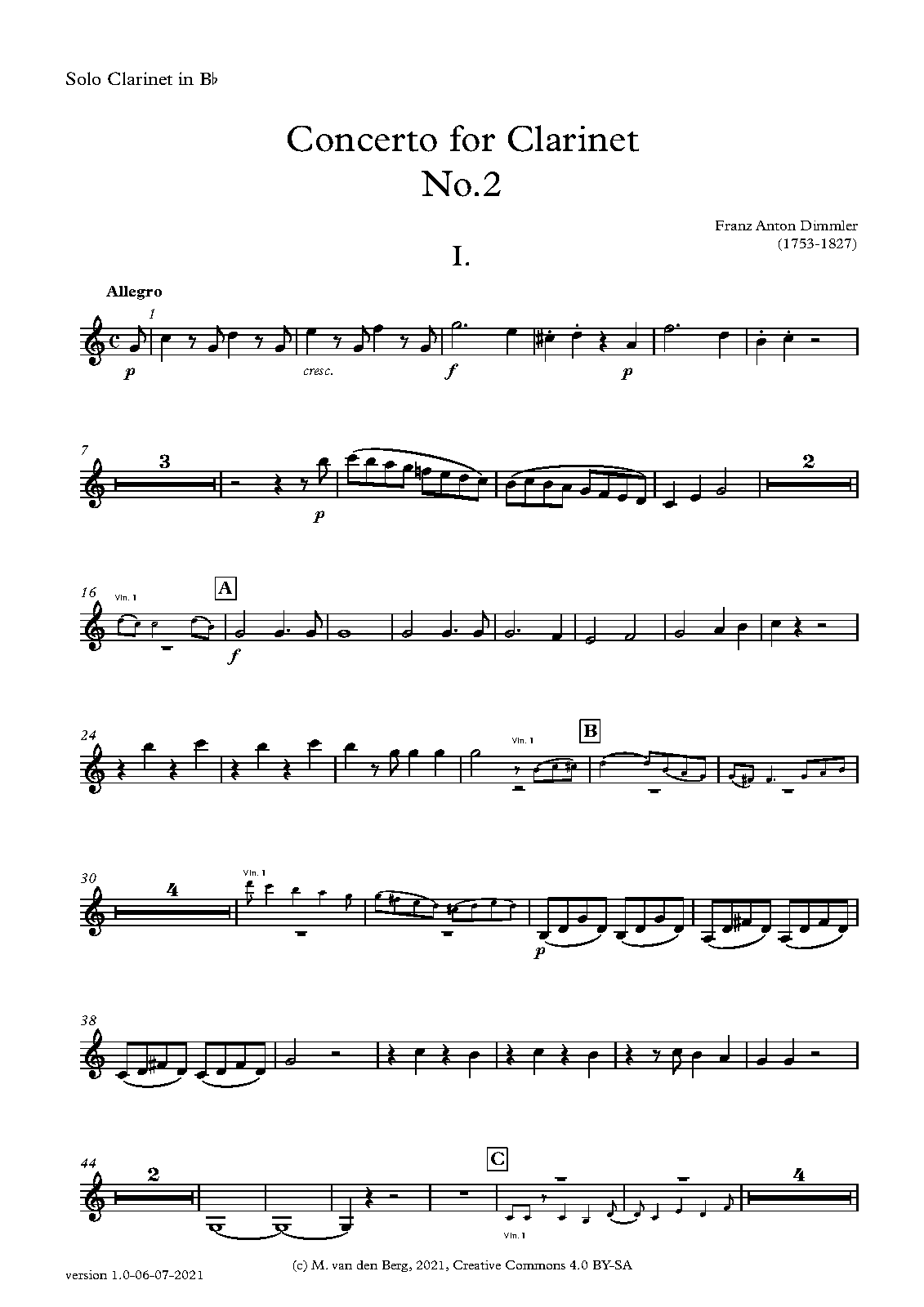 | Work Title | Clarinet Concerto No.2 in B-flat major |