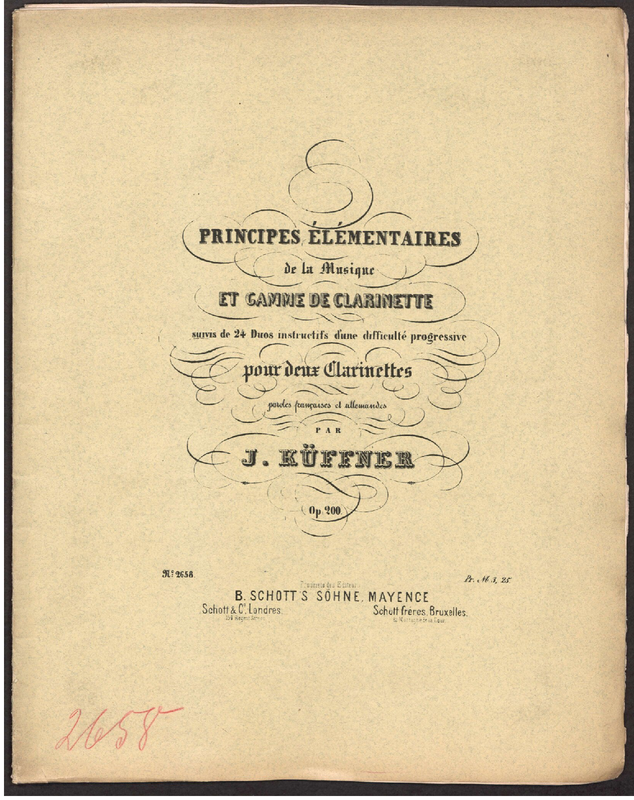 | Alternative. Title | Principes élémentaires de la musique et gamme de Clarinette suivis de 24 duos instructifs d'une difficulté progressive pour deux clarinettes |