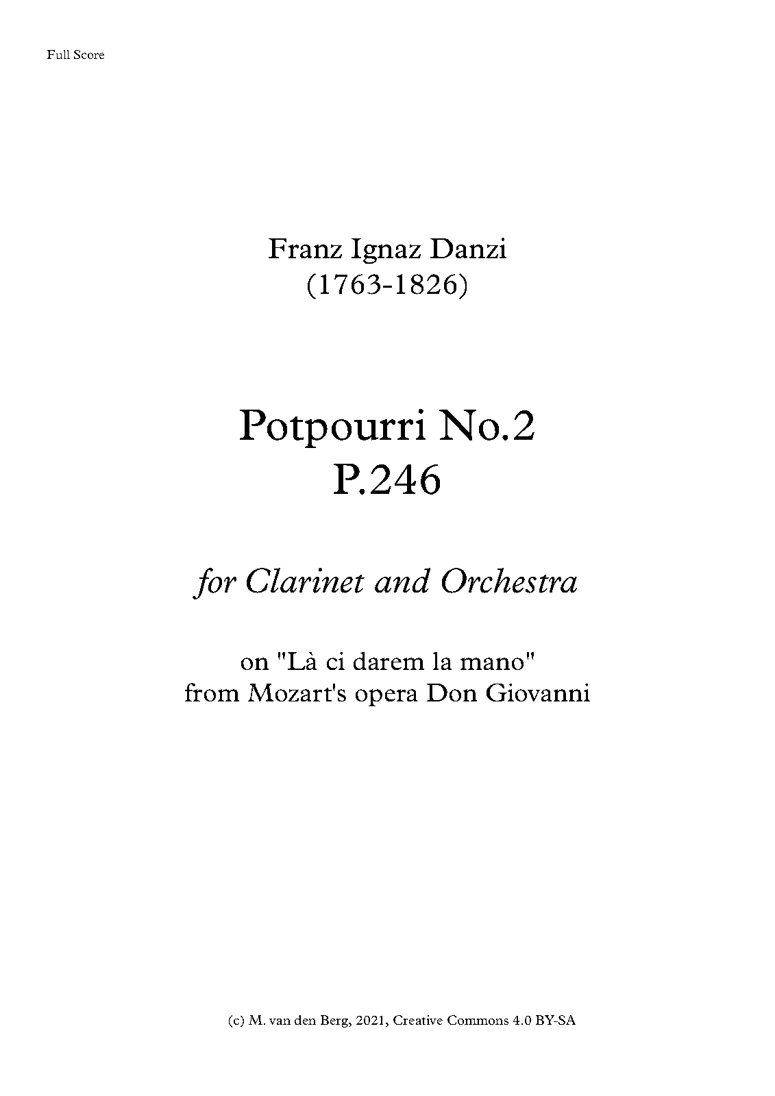 Deuxieme Pot Pourri pour la Clarinette avec Accompagnement de 2 Violons, Alto, Basse (Flute, 2 Oboes, 2 Bassoons et 2 Cors ad libitum)