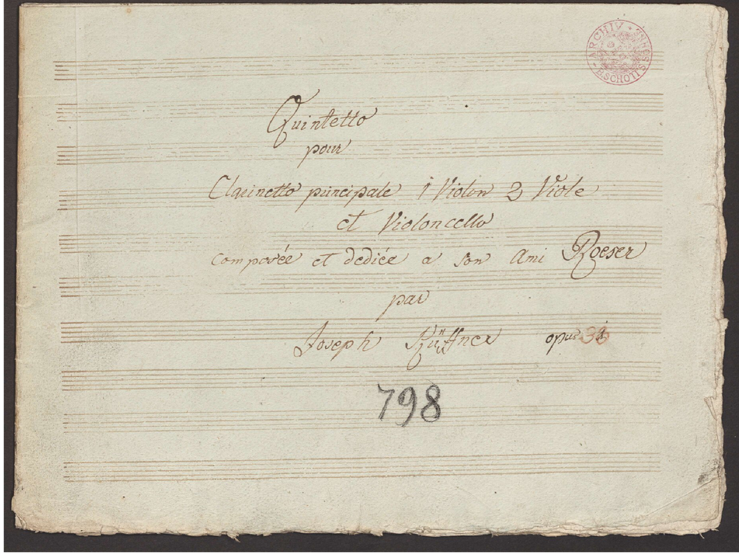 Quintetto pour Clarinetto principale 1 Violon 2 Viole et Violoncello