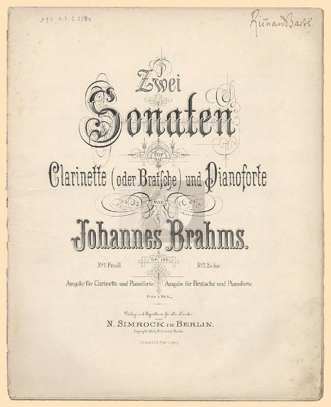1895-01-08 — Vienna, Saal Bösendorfer: Richard Mühlfeld (clarinet), Johannes Brahms (piano)