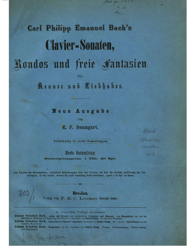 | Work Title | Clavier-Sonaten für Kenner und Liebhaber |