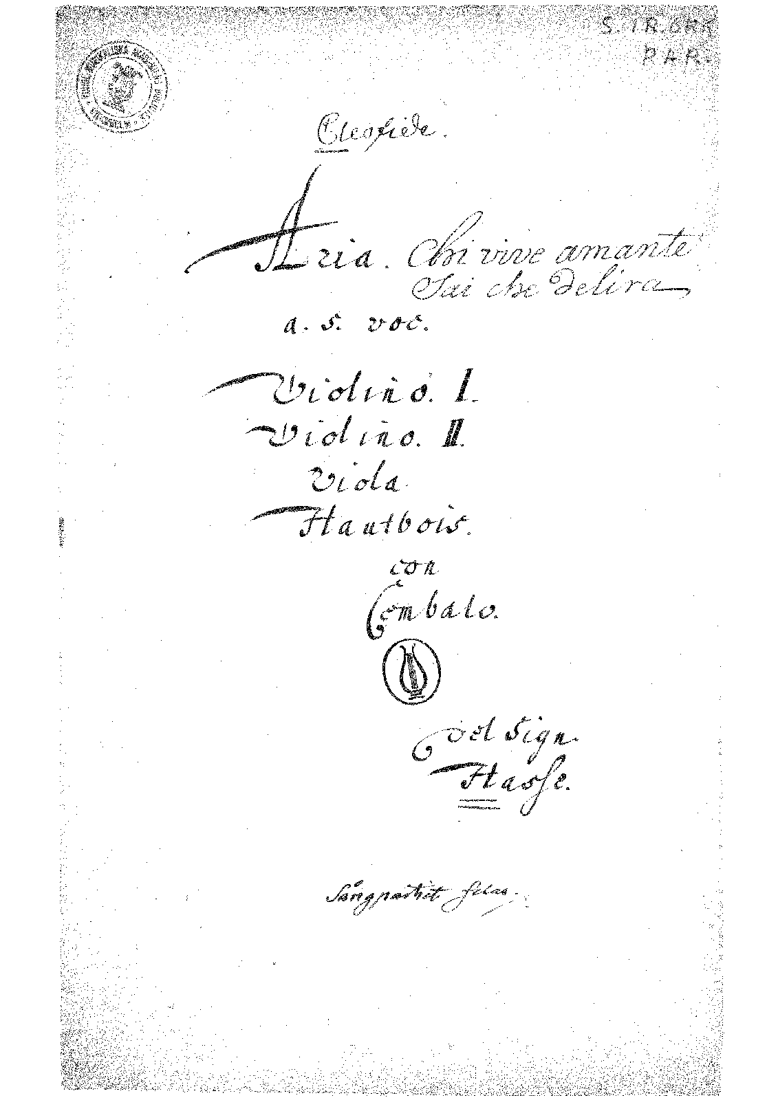 Misc. Notes Originally sung by Faustina Bordoni. For parts visit baroque-opera.com. Follow the score with audio on YouTube.