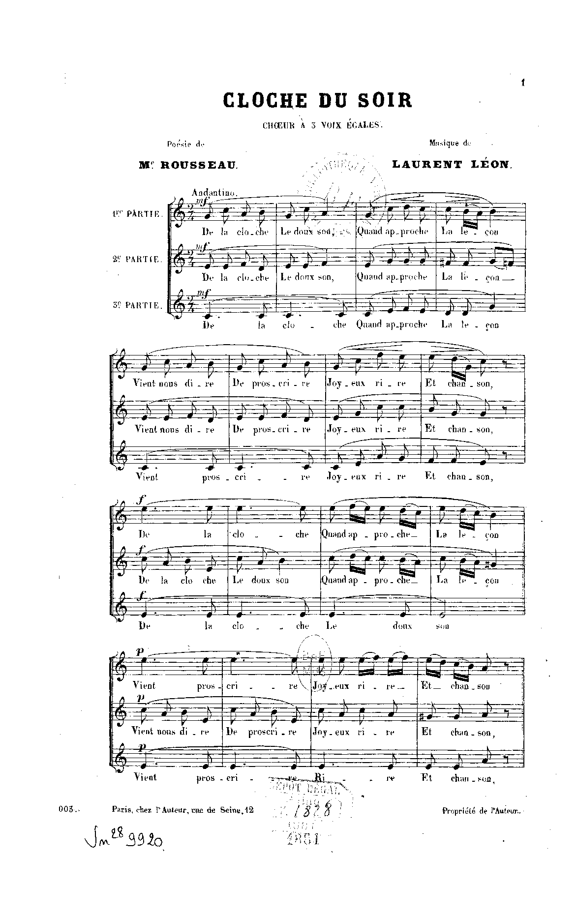 | Alternative. Title | Chœur à 3 voix égales |