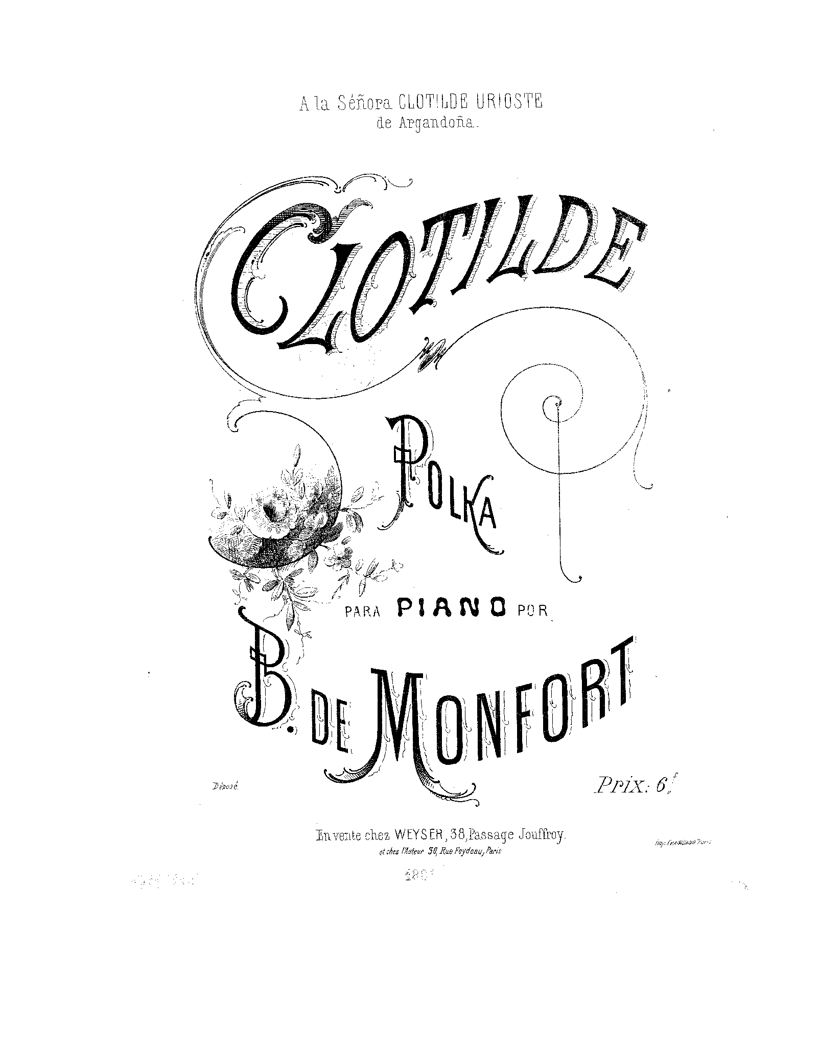 | Dedication | à la Señora Clotilde Urioste de Argandoña |