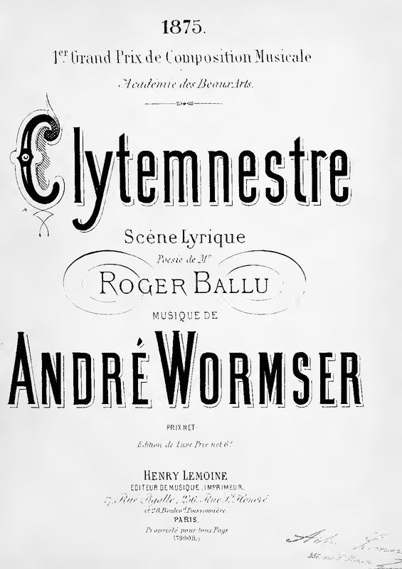| Instrumentation | Voices: Clytemnestre (soprano), Égisthe (tenor), Orester (baritone) Orchestra |