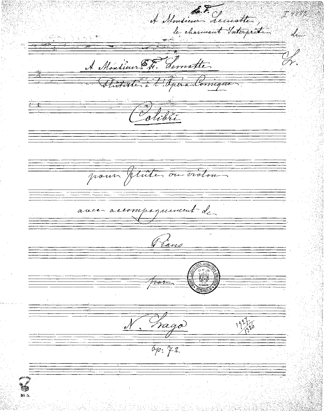 | Dedication | Monsieur E. F. Lematte, flutiste a l'Opera comique, Paris |