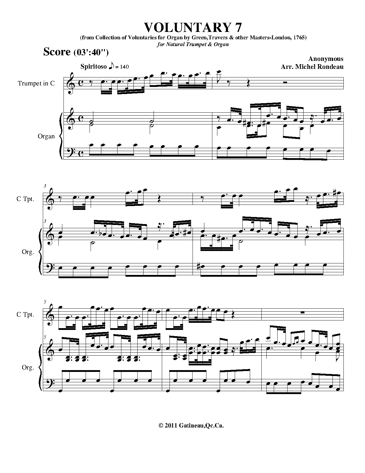 ⇒ 19 more: Trumpet (C) • Trumpet (B♭) • Organ • 1a. Travers: Voluntary in C major (transposed, D major) • Trumpet (C) • Trumpet (D) • Trumpet (A) • Organ • Engraving files (Finale) • Engraving files (XML) • 2. Anonymous: Voluntary in C major • Trumpet (C) • Trumpet (B♭) • Organ • 2a. Anonymous: Voluntary in C major (transposed, D major) • Trumpet (C) • Trumpet (D) • Trumpet (A) • Organ