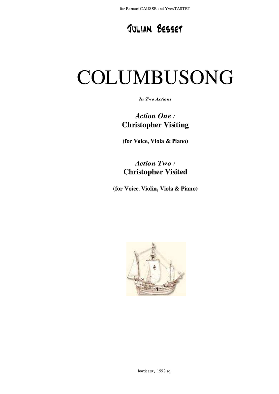 Bordeaux c.1985, originally manuscripted for voice & piano. Reworked 05/92 with Notator SL + 10/96 with Logic Audio. First movement performed in public by the dedicatees Bernard Causse (voice), Yves Tastet (viola) and the composer at the piano in june 2001. Second movement composed as an afterthought.