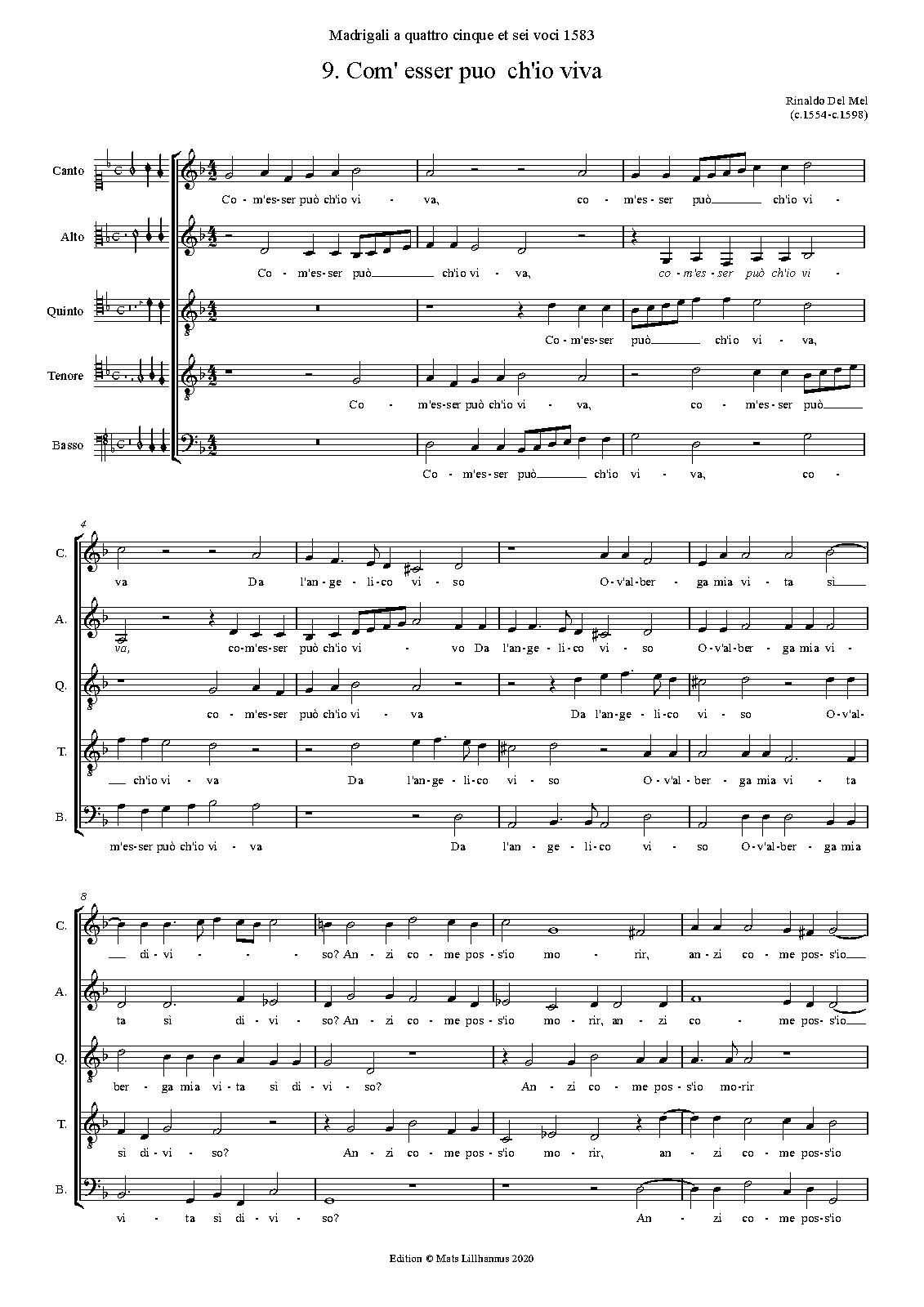| First Publication. | 1583 in Madrigali a quattro, cinque et sei voci (No.9) |