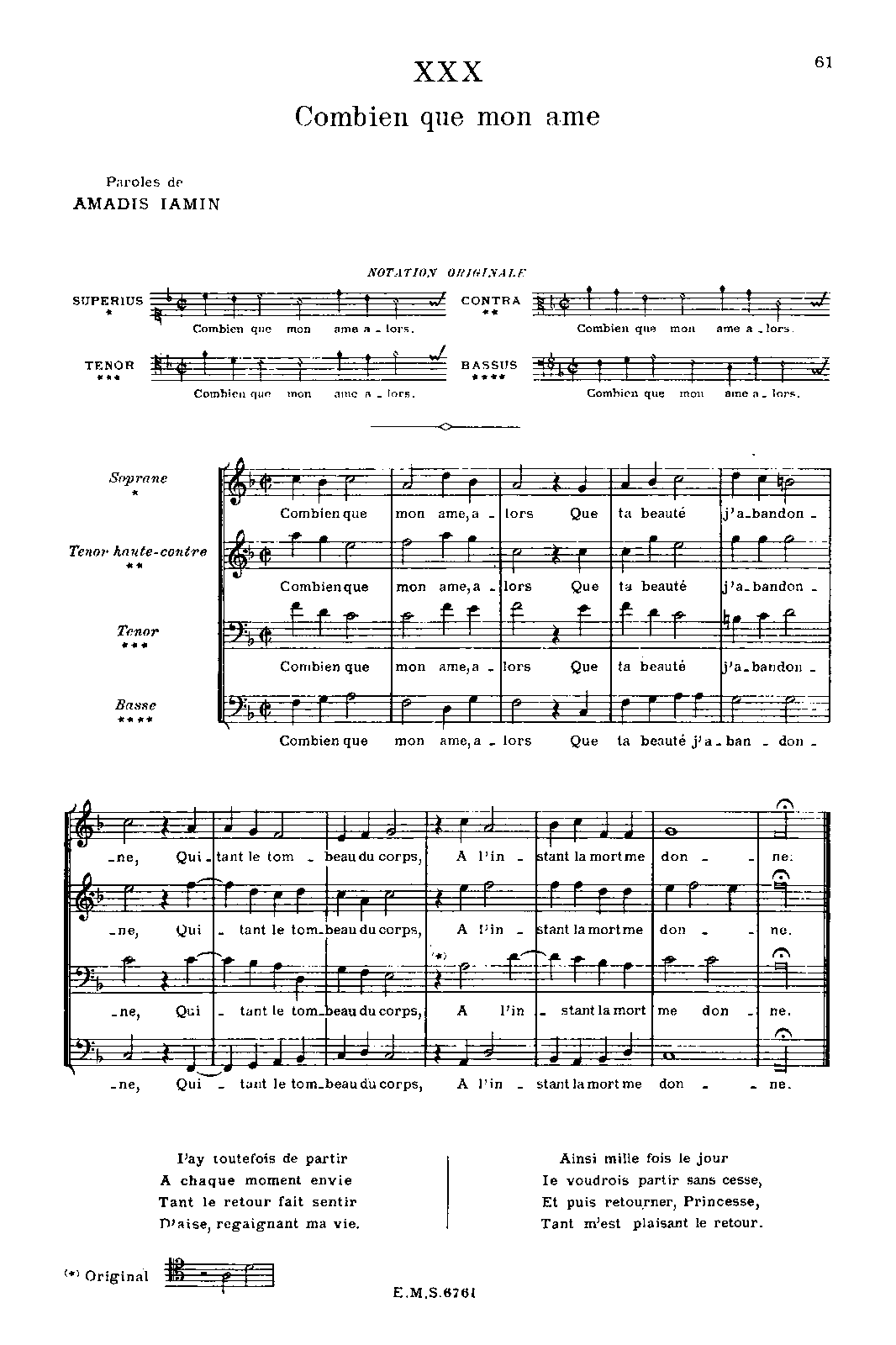 | Work Title | Combien que mon ame |