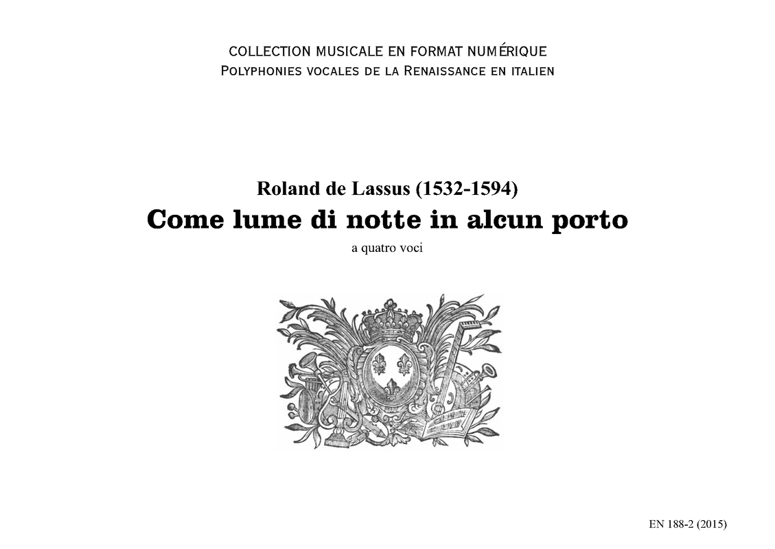 Come lume di notte in alcun porto, LV 770 (Lassus, Orlande de)