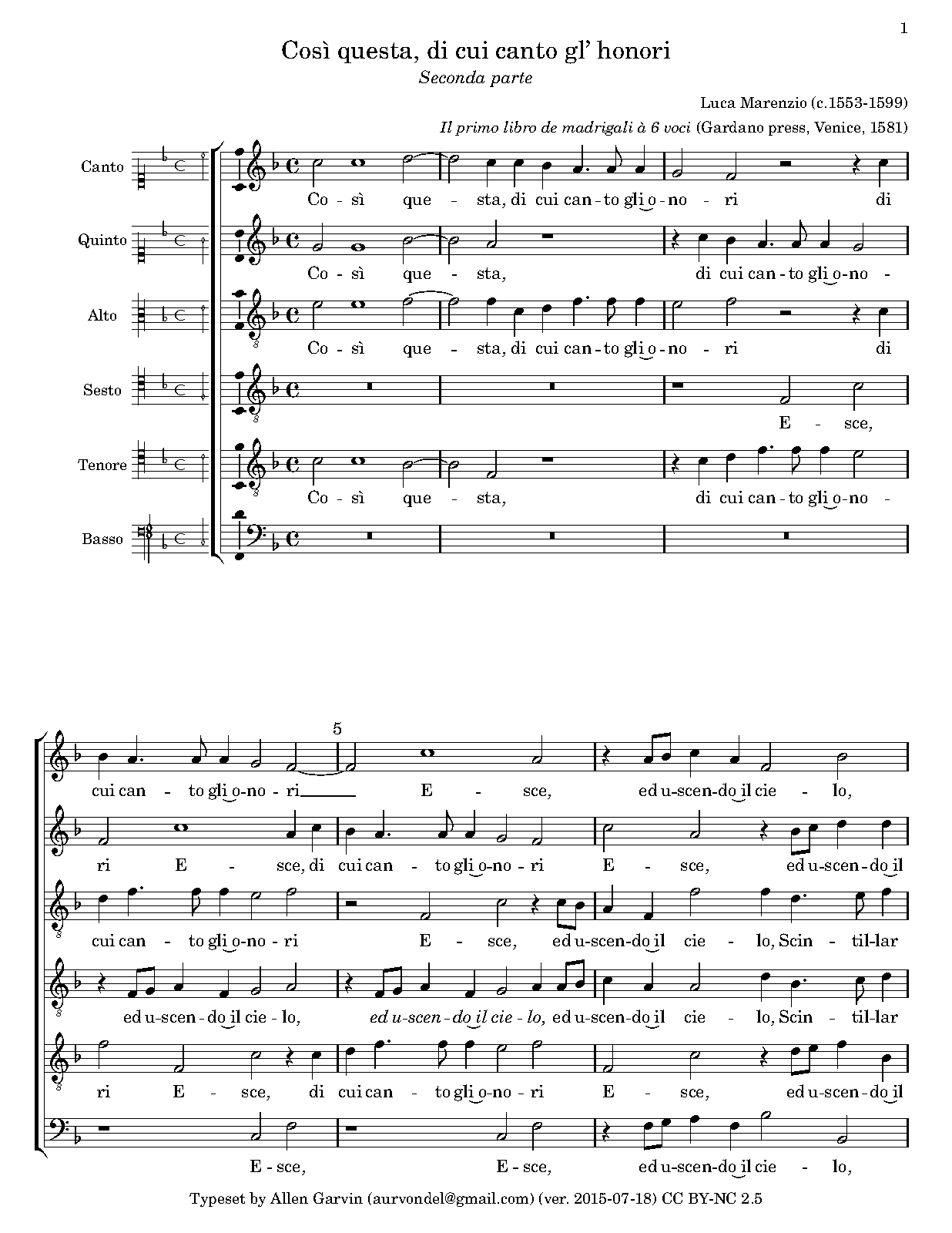 | First Publication | 1581 in Il primo libro de madrigali a 6 voci (No.1) |