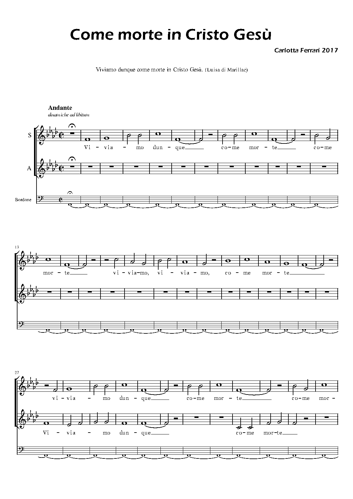 | Work Title | Come morte in Cristo Gesù |