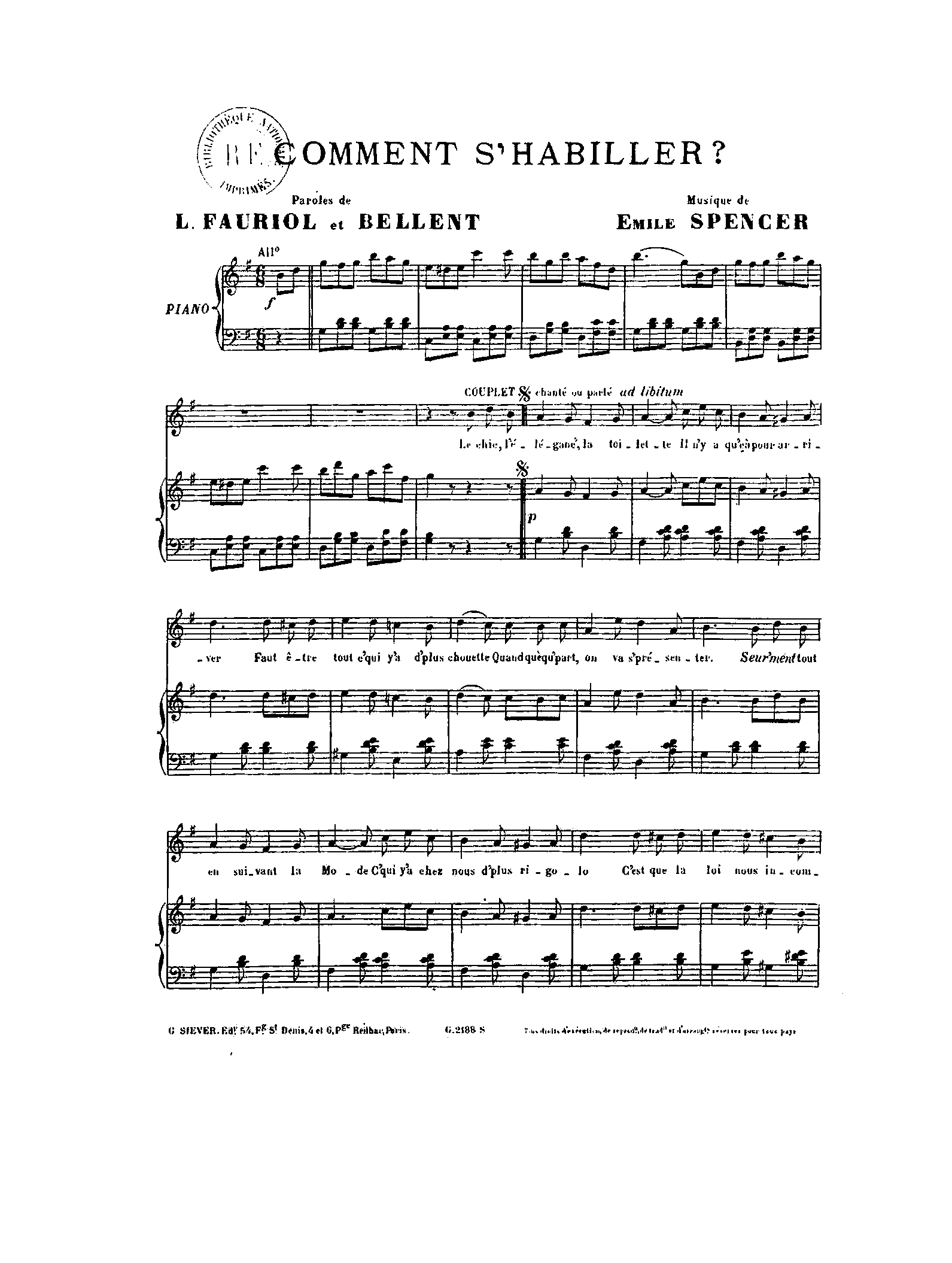 | Librettist | Louis Fauriol (fl.1890-1917) Bellent (fl.1909-10) |