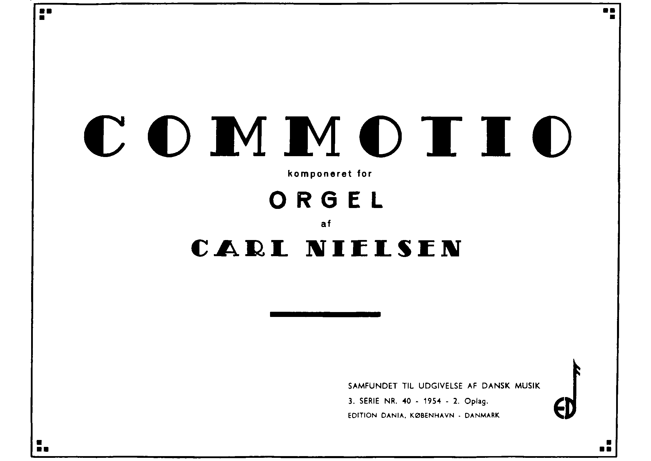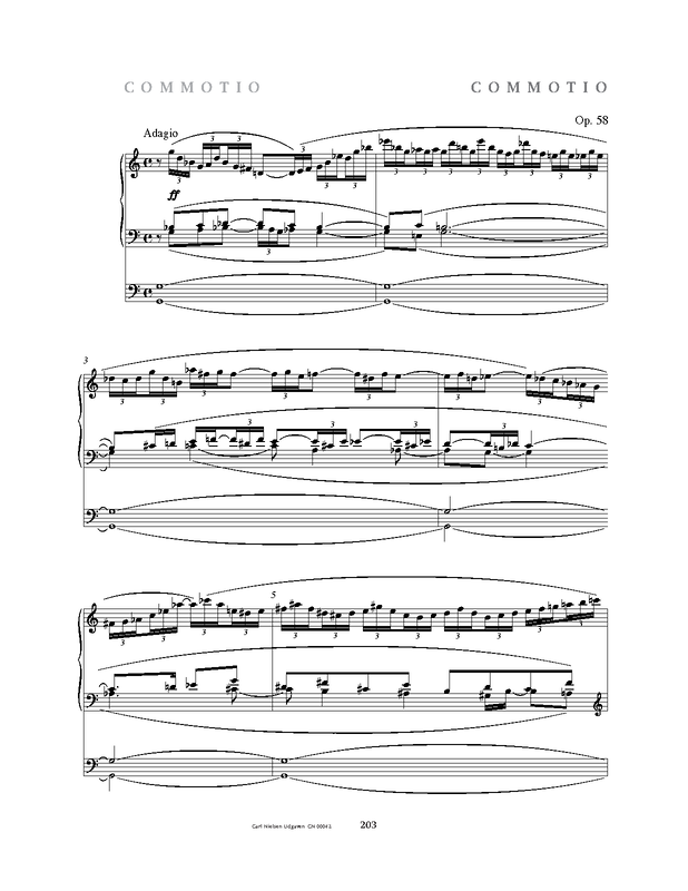 Finishing the 29 smaa Præludier for Orgel eller Harmonium, Nielsen began working on what was to be his last major composition: the organ work Commotio. It is not quite clear precisely when Nielsen began on the composition; some of the drafts are possibly from June 1930. The work was completed in February 1931.