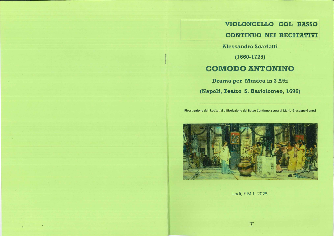 Revision of the complete score of COMODO ANTONINO by Alessandro Scarlatti, with fullfillment of the missing Recitativi and of the missing Act 3 Final Scene