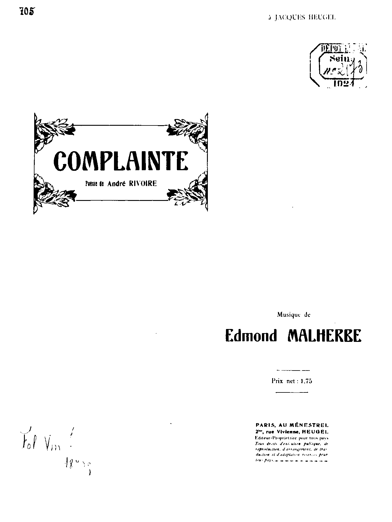 Publisher. Info. Paris: Heugel, 1924. Plate H.28,639.